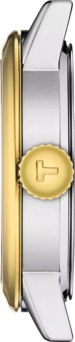 Восхитительные женские часы Tissot Classic Dream с артикулом T129.210.22.263.00 — это образец оригинальных часов, сочетающих в себе современность и классику, которые дарят обладательнице изысканность и вневременной дизайн, подходящий как для формальных встреч, так и для повседневного ношения. Эти элегантные швейцарские часы станут идеальным дополнением к любому образу благодаря своей универсальности и безупречному стилю. Круглый корпус диаметром 28 мм и толщиной 7,1 мм выполнен из нержавеющей стали 316L с PVD-покрытием цвета желтого золота, что придает модели роскошный вид при весе всего 74 г. Циферблат цвета слоновой кости, защищенный устойчивым к царапинам сапфировым стеклом, украшен классическими римскими цифрами. Внутри корпуса установлен точный швейцарский кварцевый механизм калибра 8 3/4''' (диаметр 19,4 мм) с функцией EOL, которая сигнализирует об окончании срока службы батареи типа Renata 364. Браслет из нержавеющей стали с PVD-покрытием в оттенках серого и желтого золота 1N14 оснащен застежкой-бабочкой с кнопками, обеспечивая удобство и надежную фиксацию. Водостойкость часов составляет 50 метров (5 АТМ/bar): они выдерживают мытье рук, попадание крупных капель.