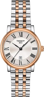 Элегантная модель Carson Premium Lady с артикулом T122.210.22.033.01 станет вашим идеальным спутником в любой момент жизни, гарантируя, что каждая прожитая вами секунда будет точной. Эти оригинальные часы, выполненные в классическом стиле, никогда не устареют и всегда будут выглядеть роскошно, что подчеркивается изящным оформлением циферблата и удлиненными тонкими стрелками. Изящные женские часы произведены в Швейцарии, о чем свидетельствует гравировка на корпусе, и оснащены надежным швейцарским кварцевым механизмом с функцией EOL (индикатор окончания срока службы батареи). Круглый корпус швейцарских часов выполнен из высококачественной нержавеющей стали 316L с PVD-покрытием цвета розового золота и имеет диаметр 30 мм, а толщину всего 6,7 мм. Вес часов: 70 г. Серебристый циферблат защищен устойчивым к появлению царапин сапфировым стеклом, а в качестве разметки используются римские цифры. Браслет изготовлен из нержавеющей стали с PVD-покрытием, окрашен в серый цвет и цвет розового золота 5N, и надежно фиксируется на запястье с помощью застежки-бабочки с кнопками. Водозащита этих часов — 50 метров (5 АТМ/bar): выдерживают мытье рук, попадание крупных капель. Калибр механизма — 7 3/4''', а его диаметр составляет 17,2 мм.