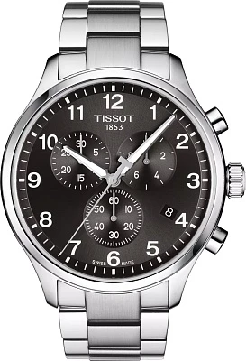 Представляем вашему вниманию Tissot Chrono XL Classic — оригинальные часы, которые подчеркнут вашу индивидуальность и городской стиль. Это мужские швейцарские часы с впечатляющим диаметром корпуса 45 мм и толщиной 11,02 мм. Круглый корпус изготовлен из прочной нержавеющей стали 316L, а циферблат насыщенного зеленого цвета защищен устойчивым к появлению царапин сапфировым стеклом. Оснащенные точным швейцарским кварцевым механизмом (калибр 13\ 1/4''', диаметр 29,8 мм) с индикатором заряда батареи EOL, эти часы также имеют функцию хронографа: 30-минутные счетчики и счетчики 1/10 секунды, центральную 60-секундную стрелку хронографа, а также функции ADD и SPLIT. На стрелки нанесено люминесцентное покрытие Super-LumiNova, обеспечивающее отличную читаемость арабских индексов. Модель комплектуется серым браслетом из нержавеющей стали с раскладной застежкой с кнопками. Вес изделия составляет 175 г. Уровень водозащиты 100 метров (10 АТМ/bar): подходят для плавания и погружения на глубину 5-7 м (выдвигать заводную головку и нажимать кнопки, находясь в воде, нельзя). Коллекция Tissot Chrono XL предлагает множество стилей, но вне зависимости от выбора, Tissot Chrono XL Classic точно раскроют вашу индивидуальность.