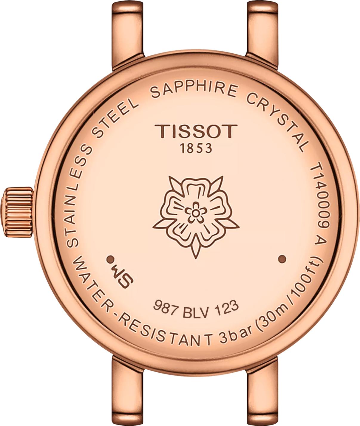 Представляем вашему вниманию оригинальные часы Tissot Lovely Round, артикул T140.009.33.111.00 — изящный и женственный аксессуар, вдохновленный моделями 1960-х годов и Seastar 1993 Lady. Эти женские часы заключены в миниатюрный, невероятно деликатный круглый корпус диаметром 19.5 мм, выполненный из нержавеющей стали 316L с PVD-покрытием цвета розового золота. Толщина корпуса составляет всего 6.3 мм, а вес часов — 39 г. Элегантности и сияния добавляет перламутровый циферблат белого цвета с индексами и фацетированное, устойчивое к царапинам сапфировое стекло. Внутри корпуса бьется сердце надежного швейцарского кварцевого механизма, калибр 5 1/2''' x 6 3/4''', работающего от батареи Renata 321. Завершает образ стальной браслет в оттенке розового золота 5N с PVD-покрытием и удобной застежкой-бабочкой с кнопками. Эти швейцарские часы обладают водонепроницаемостью 30 метров (3 АТМ/bar): минимальная защита от мелких брызг. Не предназначены для погружения в воду.