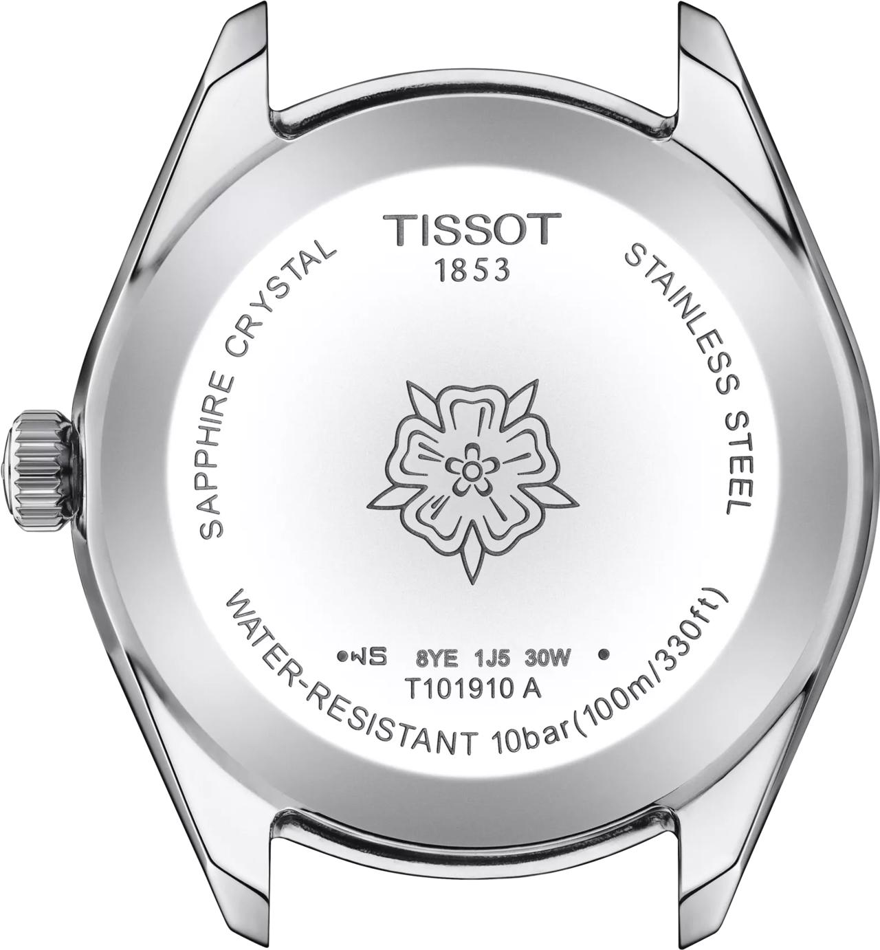 Представляем вам оригинальные часы Tissot PR 100 Sport Chic Lady — T101.910.11.351.00, воплощающие классику и предназначенные для частого ношения, идеально подходящие на любой случай. Эти швейцарские часы сохраняют простой и элегантный вид, за который так ценится коллекция, а лаконичная эстетика символизирует роскошь, качество и нестареющий стиль, что делает эти женские часы превосходным выбором. Корпус круглой формы изготовлен из высококачественной нержавеющей стали 316L, а браслет из нержавеющей стали серого цвета оснащен раскладывающейся застежкой с кнопками, что обеспечивает надежность и комфорт. Внутри корпуса диаметром 36 мм и толщиной 9 мм находится точный швейцарский кварцевый механизм калибра 10 1/2''' с диаметром 23.3 мм, работающий от батареи типа Renata 371. Вес изделия составляет 112 граммов, а ширина ушка — 18 мм. Циферблат нежно-голубого, или, как его еще называют, «ледяного синего» цвета украшен индексами, а стрелки покрыты люминесцентным составом Super-LumiNova для идеальной читаемости в темноте. Защиту циферблата обеспечивает устойчивое к царапинам сапфировое стекло с антибликовым покрытием. Модель обладает уровнем водозащиты 100 метров (10 АТМ/bar): подходят для плавания и погружения на глубину 5–7 м (выдвигать заводную головку и нажимать кнопки, находясь в воде, нельзя).