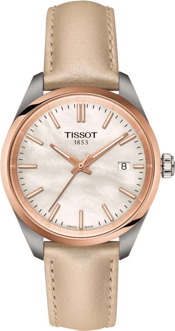 Откройте для себя очарование и точность, присущие швейцарским часам, с моделью Tissot PR 100 — T150.210.26.111.00, которые стали бестселлером с момента своего появления в начале 1980-х годов и полностью оправдывают свое название, означающее «точный» (P), «надежный» (R) и водонепроницаемый до 10 бар (100 м). Эти оригинальные часы, созданные из высококачественной нержавеющей стали 316L с PVD-покрытием цвета розового золота, отличаются превосходной коррозионной стойкостью и долговечностью, что гарантирует сохранение эстетики коллекции на долгие годы, а конусообразная заводная головка добавляет роскошный штрих этому изысканному аксессуару. Идеальные женские часы имеют круглую форму корпуса диаметром 34 мм и толщиной всего 8,25 мм, при этом вес составляет 41 г. Сердцем этих часов является швейцарский кварцевый механизм с калибром 10 1/2''' и функцией EOL (индикатор окончания срока службы батареи), работающий от батареи Renata 371. Циферблат из белого перламутра с индексами защищен устойчивым к царапинам сапфировым стеклом, а стрелки оснащены покрытием Super-LumiNova для лучшей читаемости в темноте. Водонепроницаемость 100 метров (10 АТМ/bar): подходят для плавания и погружения на глубину 5–7 м (выдвигать заводную головку и нажимать кнопки, находясь в воде, нельзя). Часы комплектуются кремовым кожаным ремешком шириной 16 мм с функцией быстрой замены и стандартной пряжкой, подчеркивающим элегантность этого аксессуара.