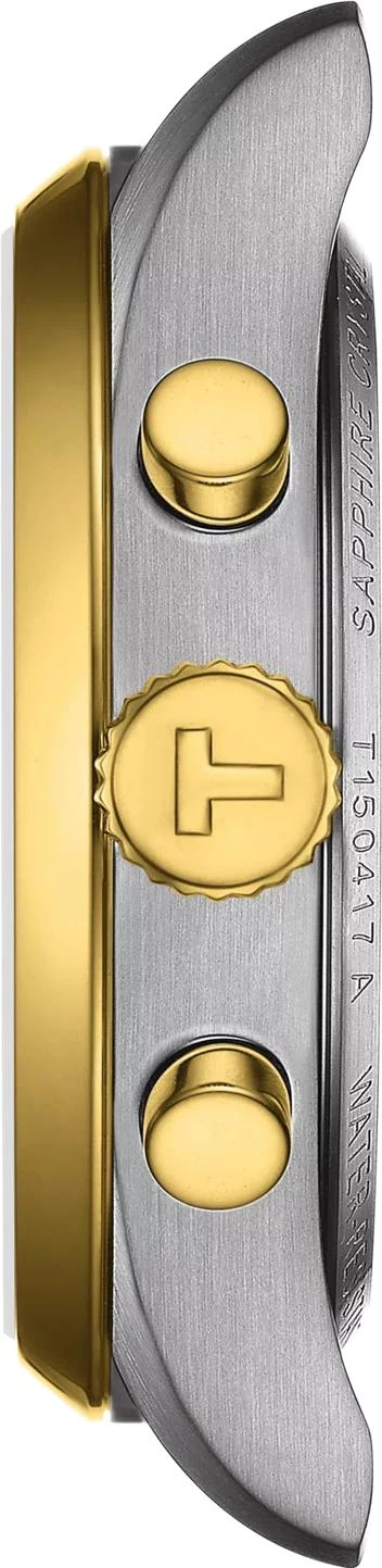 Привнесите в свой образ нотку спортивного стиля с мужскими часами Tissot PR 100 Chronograph. Это оригинальные швейцарские часы, которые станут надежным спутником на каждый день. Модель оснащена швейцарским кварцевым механизмом, обеспечивающим исключительную точность и долговечность. Корпус диаметром 40 мм и толщиной 11,26 мм выполнен из нержавеющей стали 316L с PVD-покрытием под желтое золото, что придает им элегантный блеск, который подчеркивается полированным средним рядом на стальном браслете. Вес часов составляет 135 г. Циферблат серебристого цвета с индексами защищен устойчивым к появлению царапин сапфировым стеклом. Видимость в условиях недостаточной освещенности гарантирована благодаря покрытию Super-LumiNova на стрелках. Кварцевый механизм G10.212 имеет функции хронографа: 30-минутный и 1/10-секундный счетчики, центральную 60-секундную стрелку хронографа, а также функции ADD и SPLIT. Дополнительно предусмотрен индикатор EOL (окончания срока службы элемента питания). Водозащита 100 метров (10 АТМ/bar): подходят для плавания и погружения на глубину 5-7 м (выдвигать заводную головку и нажимать кнопки, находясь в воде, нельзя).