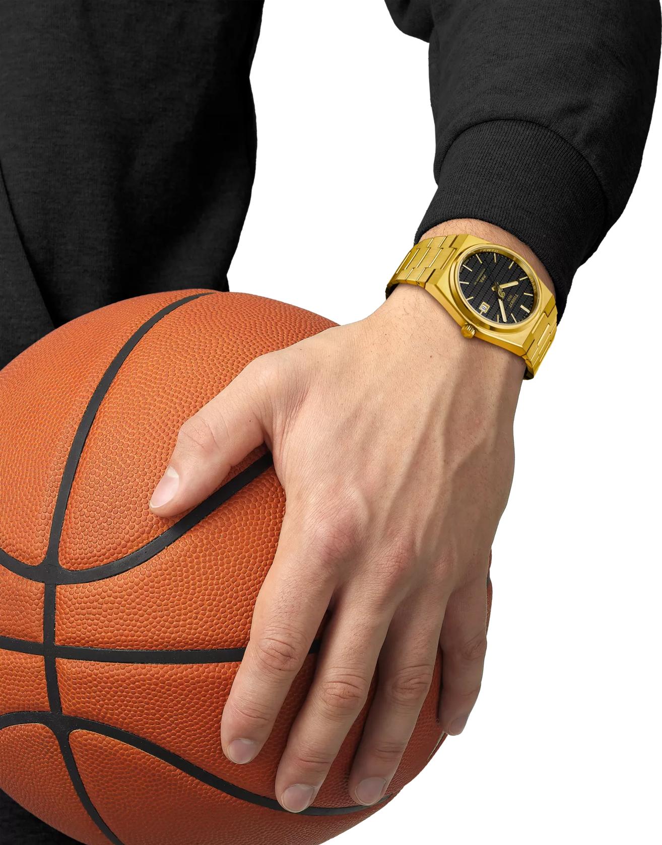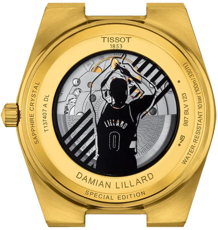 Оригинальные часы Tissot PRX Powermatic 80 Damian Lillard Special Edition 40mm, которые являются воплощением стиля и функциональности, разработанные в честь знаменитого баскетболиста Дэмиана Лилларда. Эти мужские часы имеют швейцарские автоматический механизм калибра 11 1/2''' с патентованной спиралью баланса Nivachron, что обеспечивает высокую точность хода. Запас хода механизма составляет до 80 часов, что является ключевой характеристикой для комфортного использования. Корпус часов выполнен из нержавеющей стали 316L с PVD-покрытием из желтого золота, имеет форму «бочка» с толщиной 10,93 мм, шириной 40 мм и длиной 39,5 мм. Уровень водозащиты составляет 100 метров (10 АТМ/bar): подходят для плавания и погружения на глубину 5-7 м (выдвигать заводную головку и нажимать кнопки, находясь в воде, нельзя). Черный циферблат с индексами защищен устойчивым к царапинам сапфировым стеклом с антибликовым покрытием, а стрелки оснащены люминесцентным покрытием Super-LumiNova. Вес часов — 138 г. Эта специальная серия сочетает в себе хорошо известные особенности PRX Powermatic 80 с уникальными элементами, отражающими личность и карьеру Лилларда. Основанные на варианте модели с золотым PVD-покрытием, эти часы могут похвастаться черным циферблатом с тиснением «0» — кивок в сторону игрового номера Лилларда. Секундная стрелка украшена монограммой Дэмиана. На обратной стороне часов прозрачная задняя крышка корпуса, через которую можно увидеть знаменитый момент празднования «Dame Time». Фланец часов раскрывает еще больше личных деталей: каждый квадрант рассказывает часть истории Лилларда. Надписи «DAME» и «TIME» украшают верхний левый и правый углы, что является синонимом игрового прозвища Лилларда и его решающих выступлений. Нижний правый угол, помеченный «DDKK», — это сердечная дань его семье. В нижнем левом углу написано «YKWTII», акроним фразы «You Know What Time It Is» (рус. «Ты знаешь, который час»), задающей настроение для тех самых культовых моментов «Dame Time». Браслет из нержавеющей стали с PVD-покрытием в цвете желтого золота оснащен застежкой-бабочкой с кнопками и имеет возможность быстрой замены. Страна-производитель этих часов — Швейцария.