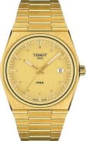 Идеальный выбор для тех, кто ценит стиль и качество, — мужские оригинальные часы Tissot PRX 40mm с артикулом T137.410.33.021.00. Эти швейцарские часы оснащены надежным кварцевым механизмом, калибр 11 1/2''', с индикатором заряда батареи EOL (end-of-life), который использует элемент питания Renata 371. Корпус бочкообразной формы, характерный для модели, выполнен из нержавеющей стали 316L с PVD-покрытием цвета желтого золота. Диаметр корпуса составляет 40 мм, длина — 39,5, а толщина — 10,4. Модель имеет устойчивое к появлению царапин сапфировое стекло. Циферблат цвета шампанского с индексами обеспечивает отличную читаемость, благодаря люминесцентному покрытию Super-LumiNova на стрелках. Ширина ушка составляет 12 мм. Браслет из нержавеющей стали с PVD-покрытием в цвете Yellow Gold 1N14, оснащен застежкой-бабочкой с кнопками, а также имеет систему быстрой замены. Уровень водозащиты 100 метров (10 АТМ/bar): подходят для плавания и погружения на глубину 5–7 м (выдвигать заводную головку и нажимать кнопки, находясь в воде, нельзя).