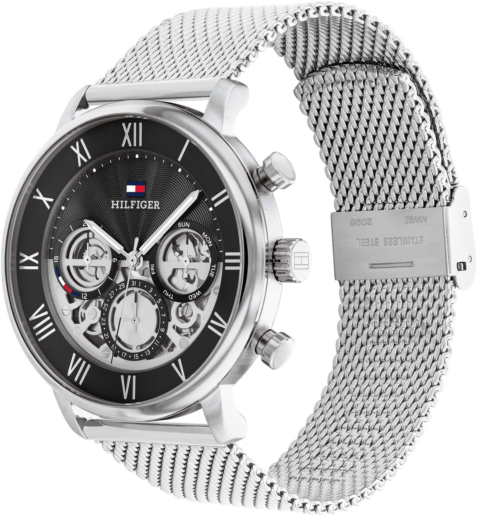 Эти мужские часы оснащены надежным кварцевым многофункциональным механизмом в корпусе из нержавеющей стали диаметром 44 мм. Элегантный черный циферблат защищен прочным минеральным стеклом, а браслет из нержавеющей стали шириной 22 мм обеспечивает удобную и надежную посадку благодаря скользящей застежке. Корпус толщиной 10,5 мм и водонепроницаемость до 5 АТМ сочетают в себе стиль и практичность для повседневного ношения.