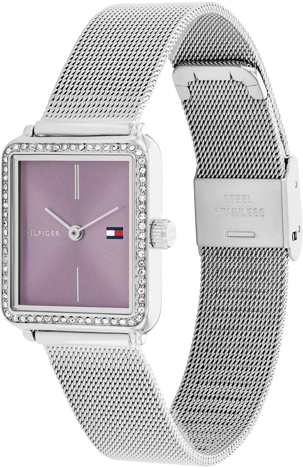 Женские часы Tommy Hilfiger — это гармония изысканного дизайна и надежной функциональности. Модель с утонченным корпусом диаметром 21,3 мм, украшенным кристаллами, и толщиной всего 6,6 мм сочетает в себе элегантность и комфорт. Яркий фиолетовый циферблат, защищенный прочным минеральным стеклом, эффектно контрастирует с серебристым стальным браслетом шириной 14 мм. Удобная скользящая застежка обеспечивает идеальную посадку на запястье, а водонепроницаемость 3 АТМ гарантирует защиту от брызг и влаги. Точный кварцевый механизм и продуманные детали делают эти часы универсальным аксессуаром для современной женщины, ценящей безупречный стиль в каждой детали.
