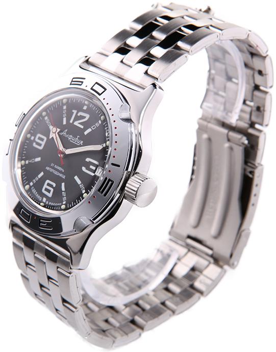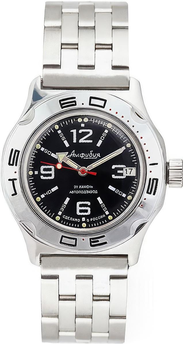 Мужские наручные часы Восток Амфибия 100315. Автоматические с ручным подзаводом. Пружина механизма заводится автоматически благодаря естественным движениям владельца в процессе ежедневной носки часов. Также есть возможность ручного завода. Корпус изготовлен из высококачественной нержавеющей стали 316L с высокими антикоррозийными свойствами. На стрелки и отметки нанесен светонакопительный состав, благодаря этому считывать информацию с циферблата возможно и в темноте. На циферблате отображается текущее число месяца. Браслет из нержавеющей стали. Органическое стекло. Часы являются водонепроницаемыми до 20 Бар. Цвет корпуса: Черный. Цвет циферблата: Черный. Ширина (с заводной головкой): 42мм. Толщина: 15мм. Гарантия: 1 год.