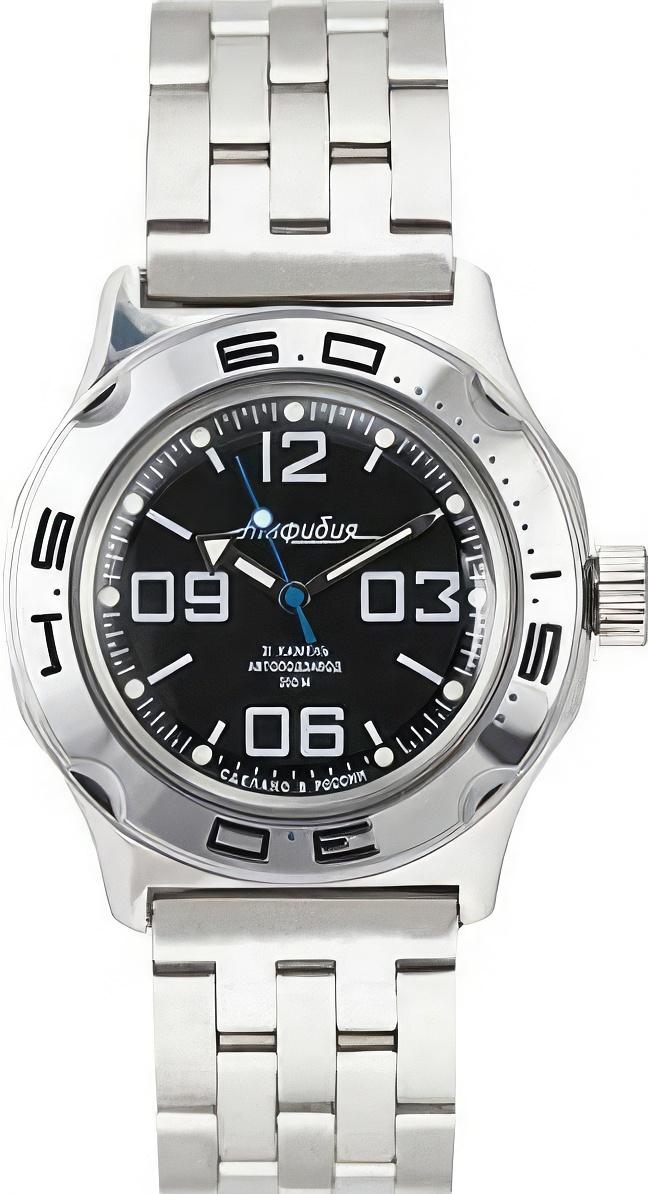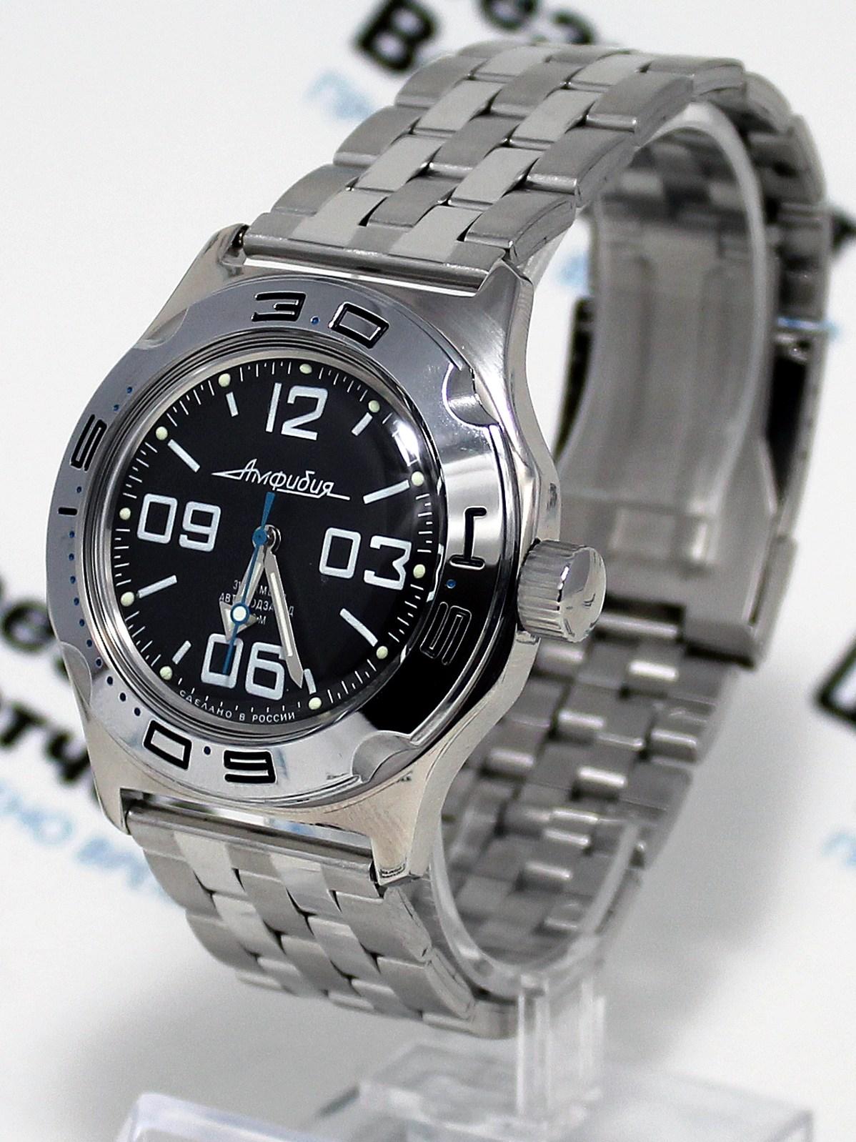 Мужские наручные часы Восток Амфибия 100819. Механические с автоподзаводом. Пружина механизма заводится автоматически благодаря естественным движениям владельца в процессе ежедневной носки часов. Корпус изготовлен из высококачественной нержавеющей стали 316L с высокими антикоррозийными свойствами. На стрелки и отметки нанесен светонакопительный состав, благодаря этому считывать информацию с циферблата возможно и в темноте. Браслет из нержавеющей стали. Органическое стекло. Часы являются водонепроницаемыми до 20 Бар. Цвет корпуса: Черный. Цвет циферблата: Черный. Ширина (с заводной головкой): 42мм. Толщина: 13мм. Гарантия: 1 год.