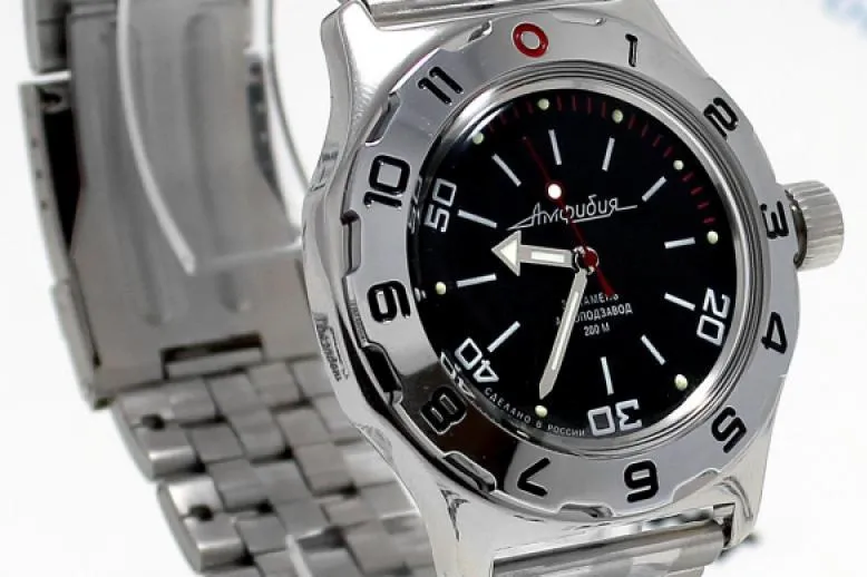 Мужские наручные часы Восток Амфибия 100820. Автоматические с ручным подзаводом. Пружина механизма заводится автоматически благодаря естественным движениям владельца в процессе ежедневной носки часов. Также есть возможность ручного завода. Корпус изготовлен из высококачественной нержавеющей стали 316L с высокими антикоррозийными свойствами. На стрелки и отметки нанесен светонакопительный состав, благодаря этому считывать информацию с циферблата возможно и в темноте. Браслет из нержавеющей стали. Органическое стекло. Часы являются водонепроницаемыми до 20 Бар. Цвет корпуса: Черный. Цвет циферблата: Черный. Ширина (с заводной головкой): 42мм. Толщина: 15мм. Гарантия: 1 год.