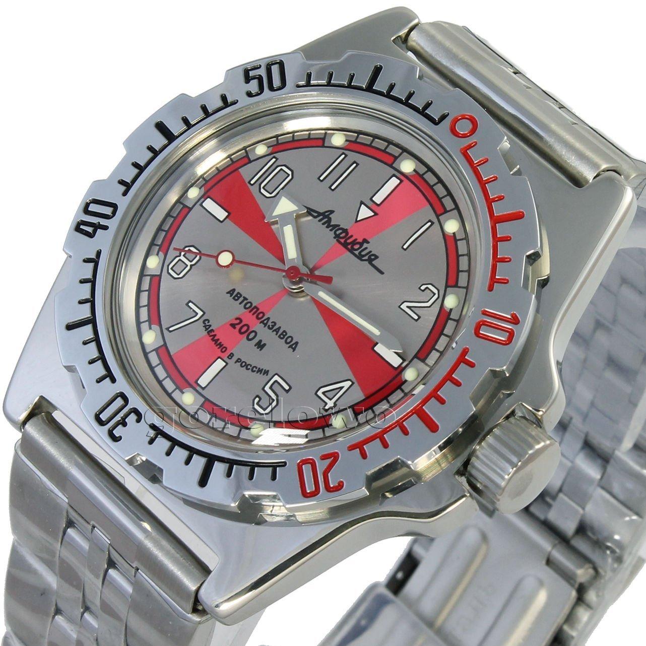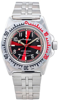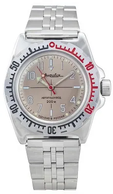 Мужские наручные часы Восток Амфибия 110651. Механические с автоподзаводом. Пружина механизма заводится автоматически благодаря естественным движениям владельца в процессе ежедневной носки часов. Корпус изготовлен из высококачественной нержавеющей стали 316L с высокими антикоррозийными свойствами. На стрелки и отметки нанесен светонакопительный состав, благодаря этому считывать информацию с циферблата возможно и в темноте. Браслет из нержавеющей стали. Органическое стекло. Часы являются водонепроницаемыми до 20 Бар. Цвет корпуса: Двухцветный. Ширина (с заводной головкой): 42мм. Толщина: 13мм. Гарантия: 1 год.