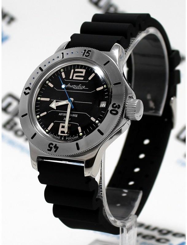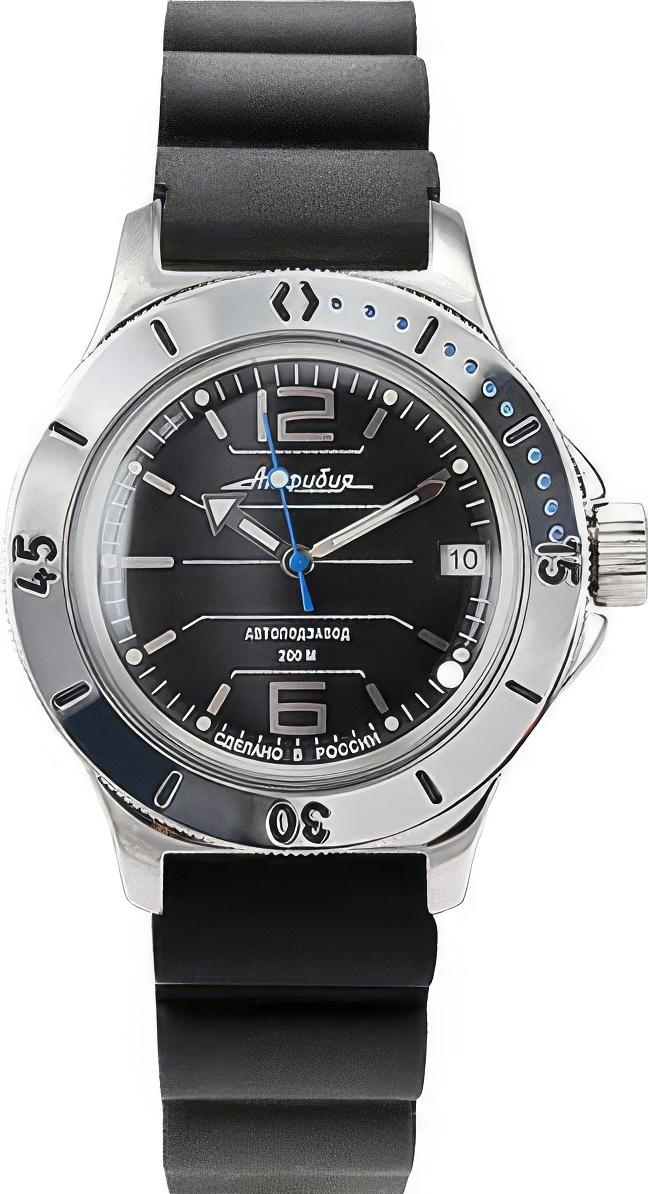Мужские наручные часы Восток Амфибия 120695. Механические с автоподзаводом. Пружина механизма заводится автоматически благодаря естественным движениям владельца в процессе ежедневной носки часов. Корпус изготовлен из высококачественной нержавеющей стали 316L с высокими антикоррозийными свойствами. На стрелки и отметки нанесен светонакопительный состав, благодаря этому считывать информацию с циферблата возможно и в темноте. На циферблате отображается текущее число месяца. Ремешок изготовлен из каучука. Органическое стекло. Часы являются водонепроницаемыми до 20 Бар. Цвет корпуса: Черный. Цвет циферблата: Черный. Ширина (с заводной головкой): 42мм. Толщина: 15мм. Гарантия: 1 год.