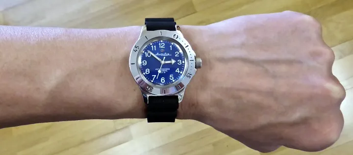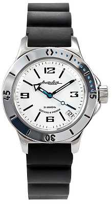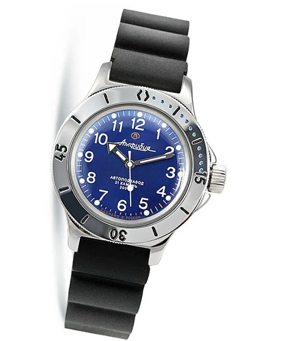 Мужские наручные часы Восток Амфибия 120812. Механические с автоподзаводом. Пружина механизма заводится автоматически благодаря естественным движениям владельца в процессе ежедневной носки часов. Корпус изготовлен из высококачественной нержавеющей стали 316L с высокими антикоррозийными свойствами. На стрелки и отметки нанесен светонакопительный состав, благодаря этому считывать информацию с циферблата возможно и в темноте. Ремешок изготовлен из каучука. Органическое стекло. Часы являются водонепроницаемыми до 20 Бар. Цвет корпуса: Синий. Цвет циферблата: Синий. Ширина (с заводной головкой): 42мм. Толщина: 15мм. Гарантия: 1 год.