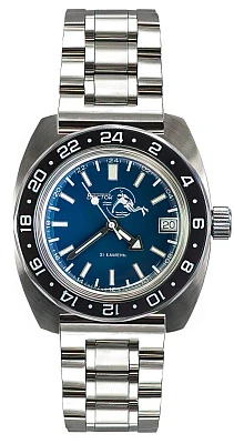 Мужские наручные часы Восток Амфибия 17003Б. Механические с ручным подзаводом. Браслет из нержавеющей стали. Браслет из нержавеющей стали. Органическое стекло. На циферблате отображается текущее число месяца. Часы являются водонепроницаемыми до 20 Бар. Цвет циферблата: Серебристый. Цвет циферблата: Черный. Цвет корпуса: Синий. На стрелки и отметки нанесен светонакопительный состав, благодаря этому считывать информацию с циферблата возможно и в темноте. Толщина: 14 мм. Гарантия: 1 год.