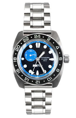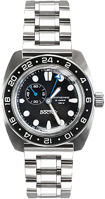 Мужские наручные часы Восток Амфибия 17034Б. Механические с ручным подзаводом. Браслет из нержавеющей стали. Ударопрочная конструкция часов защищает от ударов и вибрации. Аккумулятор обеспечивает часы достаточным питанием приблизительно на 10 лет. Браслет из нержавеющей стали. Органическое стекло. Часы являются водонепроницаемыми до 20 Бар. Цвет циферблата: Черный. Цвет корпуса: Черный. На стрелки и отметки нанесен светонакопительный состав, благодаря этому считывать информацию с циферблата возможно и в темноте. Высота (с ушками): 46 мм. Толщина: 15 мм. Гарантия: 1 год.