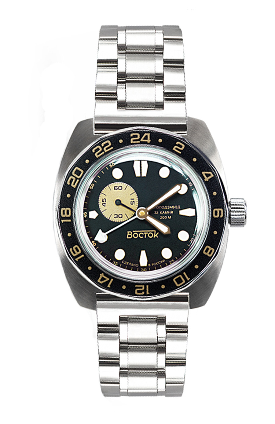 Мужские наручные часы Восток Амфибия 17098Б. Механические с ручным подзаводом. Браслет из нержавеющей стали. Ударопрочная конструкция часов защищает от ударов и вибрации. Аккумулятор обеспечивает часы достаточным питанием приблизительно на 10 лет. Браслет из нержавеющей стали. Органическое стекло. Часы являются водонепроницаемыми до 20 Бар. Цвет циферблата: Черный. Цвет корпуса: Черный. На стрелки и отметки нанесен светонакопительный состав, благодаря этому считывать информацию с циферблата возможно и в темноте. Высота (с ушками): 46 мм. Толщина: 15 мм. Гарантия: 1 год.