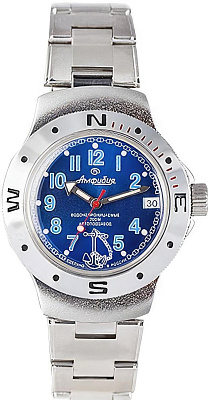 Мужские наручные часы Восток Амфибия 060382. Механические с автоподзаводом. Пружина механизма заводится автоматически благодаря естественным движениям владельца в процессе ежедневной носки часов. Корпус изготовлен из высококачественной нержавеющей стали 316L с высокими антикоррозийными свойствами. На стрелки и отметки нанесен светонакопительный состав, благодаря этому считывать информацию с циферблата возможно и в темноте. На циферблате отображается текущее число месяца. Браслет из нержавеющей стали. Органическое стекло. Часы являются водонепроницаемыми до 20 Бар. Цвет корпуса: Двухцветный. Цвет циферблата: Синий. Ширина (с заводной головкой): 42мм. Толщина: 13мм. Гарантия: 1 год.