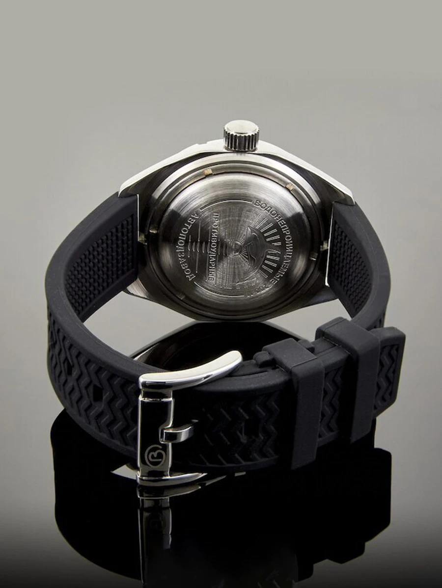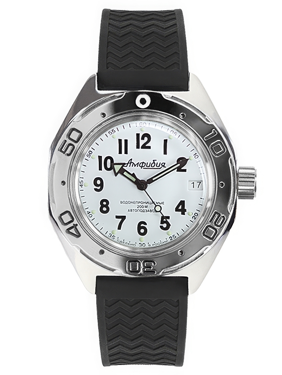 Мужские наручные часы Восток Амфибия 67070Б. Механические с ручным подзаводом. Полимерный ремешок. Натуральный полимерный материал является идеальным для изготовления ремешка благодаря своей чрезвычайной прочности и гибкости. Ударопрочная конструкция часов защищает от ударов и вибрации. Браслет из нержавеющей стали. Органическое стекло. Часы являются водонепроницаемыми до 20 Бар. Цвет циферблата: Серебристый. Цвет корпуса: Белый. На стрелки и отметки нанесен светонакопительный состав, благодаря этому считывать информацию с циферблата возможно и в темноте. Толщина: 15 мм. Гарантия: 1 год.