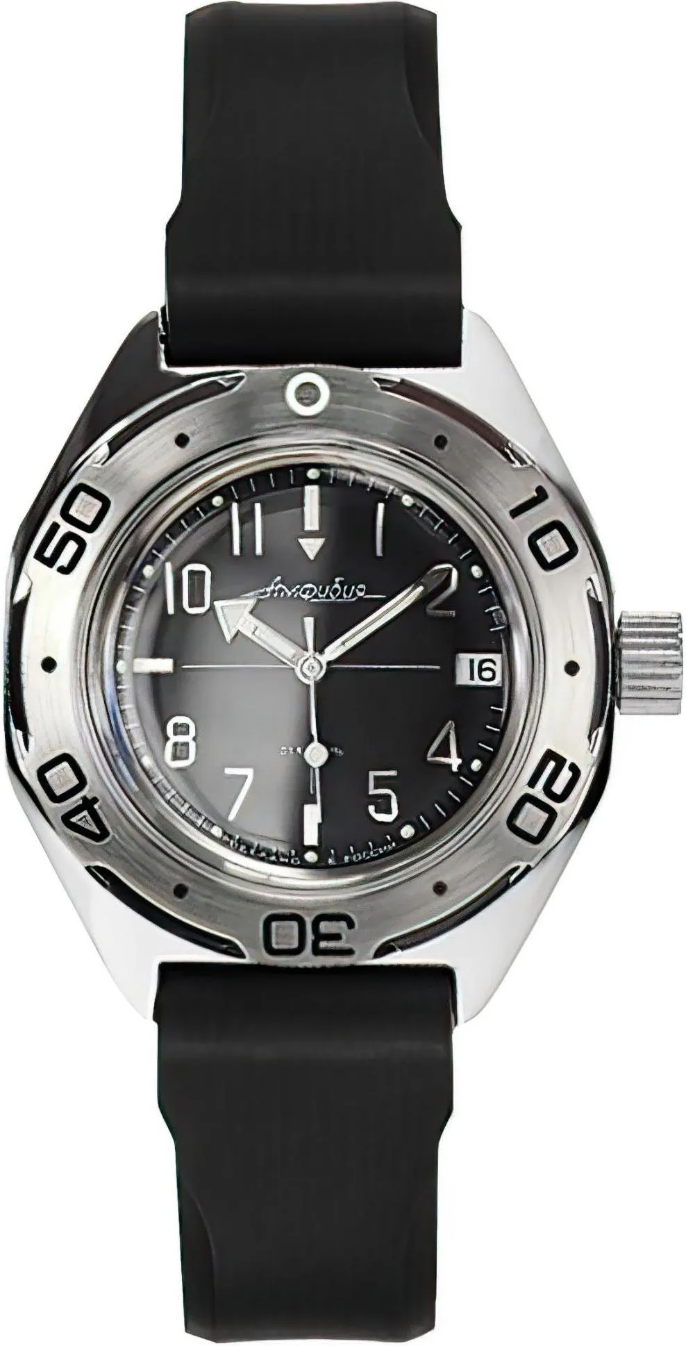 Мужские наручные часы Восток Амфибия 670921. Механические с автоподзаводом. Пружина механизма заводится автоматически благодаря естественным движениям владельца в процессе ежедневной носки часов. На стрелки и отметки нанесен светонакопительный состав, благодаря этому считывать информацию с циферблата возможно и в темноте. Полимерный ремешок. Натуральный полимерный материал является идеальным для изготовления ремешка благодаря своей чрезвычайной прочности и гибкости. Корпус изготовлен из высококачественной нержавеющей стали 316L с высокими антикоррозийными свойствами. Органическое стекло. Часы являются водонепроницаемыми до 20 Бар. Цвет корпуса: Черный. Цвет циферблата: Синий. Толщина: 10 мм. Гарантия: 1 год.