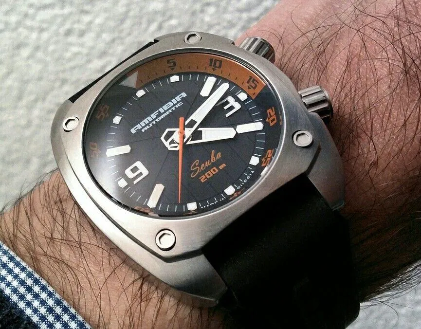 Мужские наручные часы Восток Амфибия 070798. Механические с автоподзаводом. Пружина механизма заводится автоматически благодаря естественным движениям владельца в процессе ежедневной носки часов. Корпус изготовлен из высококачественной нержавеющей стали 316L с высокими антикоррозийными свойствами. На стрелки и отметки нанесен светонакопительный состав, благодаря этому считывать информацию с циферблата возможно и в темноте. Ремешок изготовлен из каучука. Прочное, устойчивое к царапинам минеральное стекло защищает часы от повреждений. Часы являются водонепроницаемыми до 20 Бар. Цвет корпуса: Двухцветный. Цвет циферблата: Коричневый. Ширина (с заводной головкой): 44мм. Толщина: 11мм. Гарантия: 1 год.