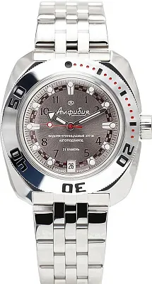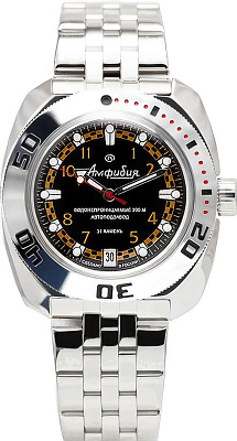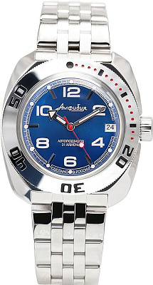 Мужские наручные часы Восток Амфибия 710432. Механические с автоподзаводом. Пружина механизма заводится автоматически благодаря естественным движениям владельца в процессе ежедневной носки часов. Корпус изготовлен из высококачественной нержавеющей стали 316L с высокими антикоррозийными свойствами. На стрелки и отметки нанесен светонакопительный состав, благодаря этому считывать информацию с циферблата возможно и в темноте. На циферблате отображается текущее число месяца. Браслет из нержавеющей стали. Органическое стекло. Часы являются водонепроницаемыми до 20 Бар. Цвет корпуса: Синий. Цвет циферблата: Голубой. Ширина (с заводной головкой): 42мм. Толщина: 12мм. Гарантия: 1 год.