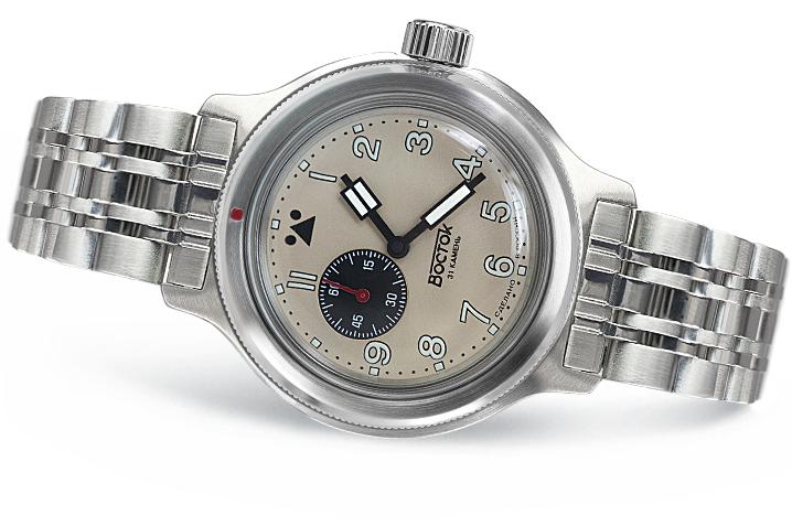 Мужские наручные часы Восток Амфибия 72095А. Механические с ручным подзаводом. Браслет из нержавеющей стали. Браслет из нержавеющей стали. Органическое стекло. Часы являются водонепроницаемыми до 20 Бар. Цвет циферблата: Серебристый. Цвет корпуса: Бежевый. На стрелки и отметки нанесен светонакопительный состав, благодаря этому считывать информацию с циферблата возможно и в темноте. Толщина: 13 мм. Гарантия: 1 год.