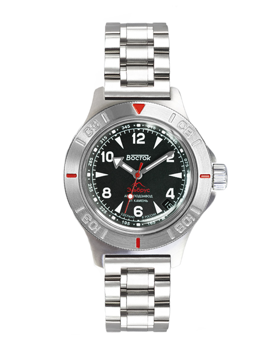 Мужские наручные часы Восток Амфибия 74092Б. Механические с ручным подзаводом. Браслет из нержавеющей стали. Ударопрочная конструкция часов защищает от ударов и вибрации. Аккумулятор обеспечивает часы достаточным питанием приблизительно на 10 лет. Браслет из нержавеющей стали. Органическое стекло. На циферблате отображается текущее число месяца. Часы являются водонепроницаемыми до 20 Бар. Цвет циферблата: Серебристый. Цвет корпуса: Черный. На стрелки и отметки нанесен светонакопительный состав, благодаря этому считывать информацию с циферблата возможно и в темноте. Высота (с ушками): 48 мм. Толщина: 15 мм. Гарантия: 1 год.