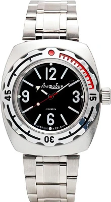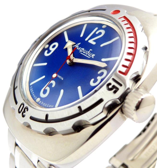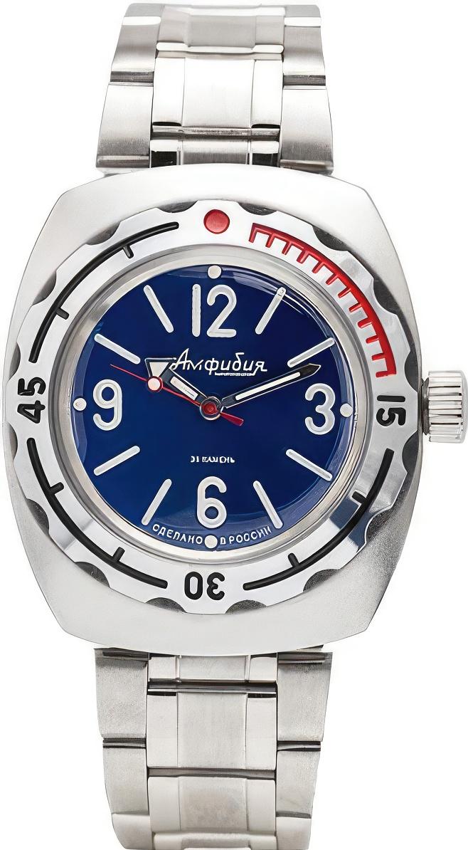 Мужские наручные часы Восток Амфибия 090914. Механические с автоподзаводом. Пружина механизма заводится автоматически благодаря естественным движениям владельца в процессе ежедневной носки часов. Корпус изготовлен из высококачественной нержавеющей стали 316L с высокими антикоррозийными свойствами. На стрелки и отметки нанесен светонакопительный состав, благодаря этому считывать информацию с циферблата возможно и в темноте. На циферблате отображается текущее число месяца. Браслет из нержавеющей стали. Органическое стекло. Часы являются водонепроницаемыми до 20 Бар. Цвет корпуса: Синий. Цвет циферблата: Синий. Ширина (с заводной головкой): 42мм. Толщина: 15мм. Гарантия: 1 год.