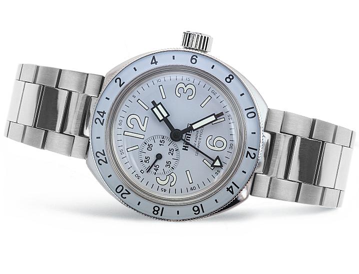 Мужские наручные часы Восток Амфибия 96077А. Механические с ручным подзаводом. Корпус изготовлен из высококачественной нержавеющей стали 316L с высокими антикоррозийными свойствами. На стрелки и отметки нанесен светонакопительный состав, благодаря этому считывать информацию с циферблата возможно и в темноте. Браслет из нержавеющей стали. Органическое стекло. Часы являются водонепроницаемыми до 20 Бар. Цвет корпуса: Серебристый. Цвет циферблата: Серый. Ширина (с заводной головкой): 39мм. Толщина: 13мм. Гарантия: 1 год.