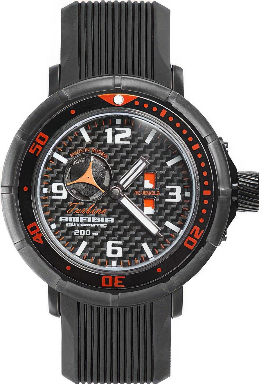 Мужские наручные часы Восток Амфибия Турбина 236489. Механические с ручным подзаводом. Корпус изготовлен из высококачественной нержавеющей стали 316L с высокими антикоррозийными свойствами. На стрелки и отметки нанесен светонакопительный состав, благодаря этому считывать информацию с циферблата возможно и в темноте. Полимерный ремешок. Натуральный полимерный материал является идеальным для изготовления ремешка благодаря своей чрезвычайной прочности и гибкости. Прочное, устойчивое к царапинам минеральное стекло защищает часы от повреждений. Часы являются водонепроницаемыми до 20 Бар. Цвет корпуса: Черный. Цвет циферблата: Черный. Ширина (с заводной головкой): 45мм. Толщина: 13мм. Гарантия: 1 год.