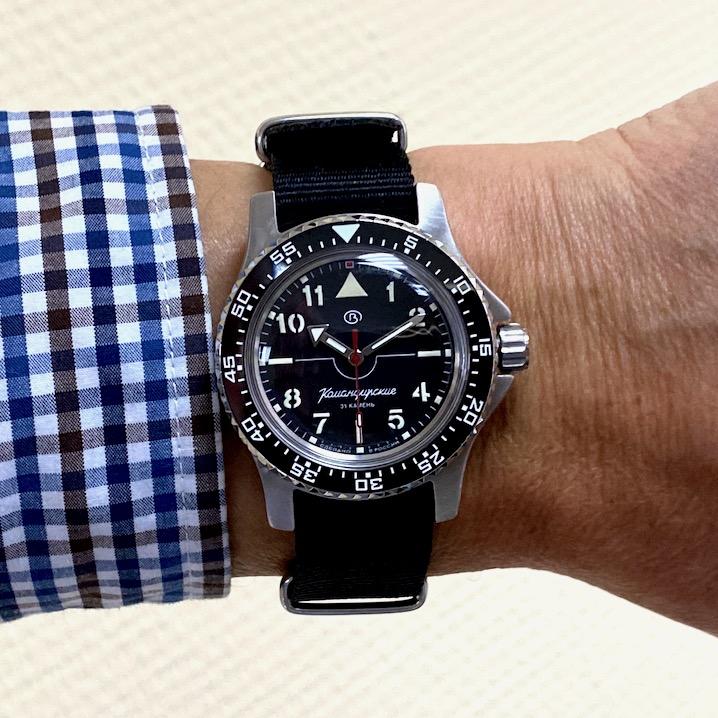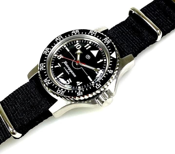 Мужские наручные часы Восток Командирские 18022А. Механические с ручным подзаводом. Текстильный ремешок. Браслет из нержавеющей стали. Органическое стекло. Часы являются водонепроницаемыми до 20 Бар. Цвет циферблата: Серебристый. Цвет циферблата: Черный. Цвет корпуса: Черный. На стрелки и отметки нанесен светонакопительный состав, благодаря этому считывать информацию с циферблата возможно и в темноте. Толщина: 13 мм. Гарантия: 1 год.