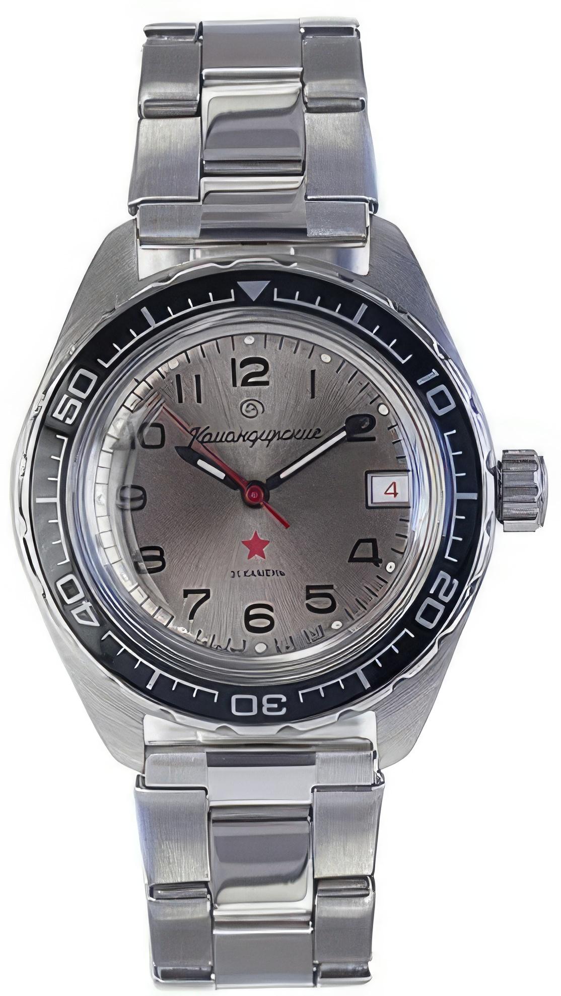 Мужские наручные часы Восток Командирские 020708. Механические с автоподзаводом. Пружина механизма заводится автоматически благодаря естественным движениям владельца в процессе ежедневной носки часов. Корпус изготовлен из высококачественной нержавеющей стали 316L с высокими антикоррозийными свойствами. На стрелки и отметки нанесен светонакопительный состав, благодаря этому считывать информацию с циферблата возможно и в темноте. На циферблате отображается текущее число месяца. Браслет из нержавеющей стали. Органическое стекло. Часы являются водонепроницаемыми до 20 Бар. Цвет корпуса: Двухцветный. Цвет циферблата: Серый. Ширина (с заводной головкой): 42мм. Толщина: 15мм. Гарантия: 1 год.