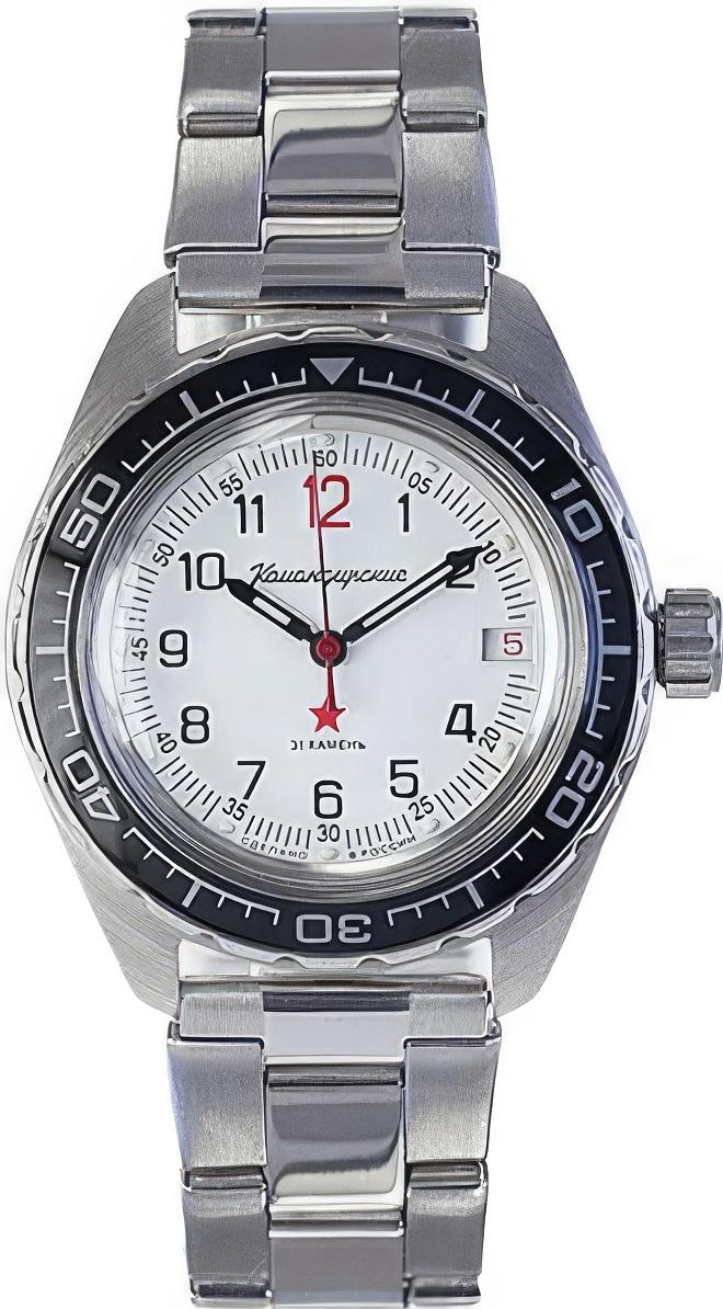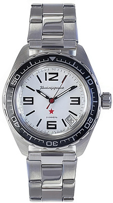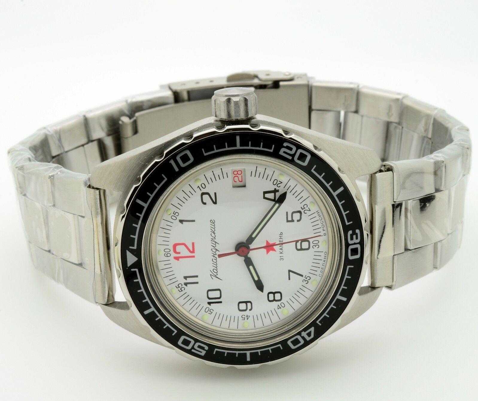 Мужские наручные часы Восток Командирские 020712. Механические с автоподзаводом. Пружина механизма заводится автоматически благодаря естественным движениям владельца в процессе ежедневной носки часов. Корпус изготовлен из высококачественной нержавеющей стали 316L с высокими антикоррозийными свойствами. На стрелки и отметки нанесен светонакопительный состав, благодаря этому считывать информацию с циферблата возможно и в темноте. На циферблате отображается текущее число месяца. Браслет из нержавеющей стали. Органическое стекло. Часы являются водонепроницаемыми до 20 Бар. Цвет корпуса: Двухцветный. Цвет циферблата: Белый. Ширина (с заводной головкой): 42мм. Толщина: 15мм. Гарантия: 1 год.