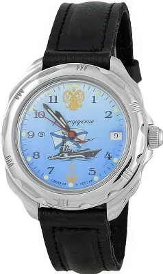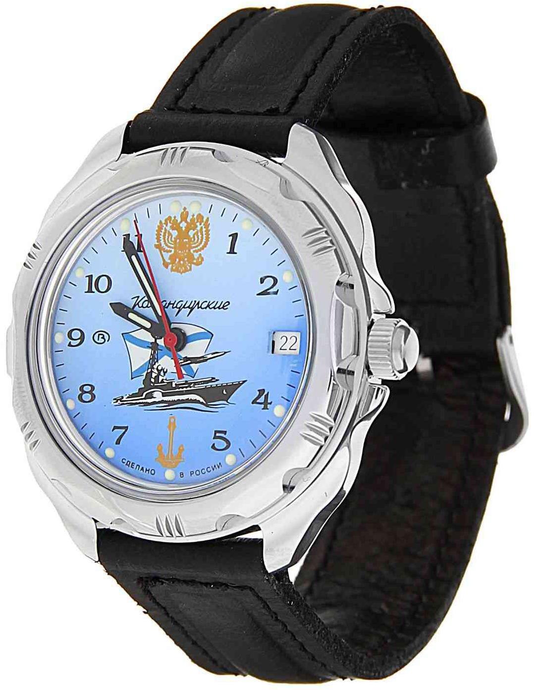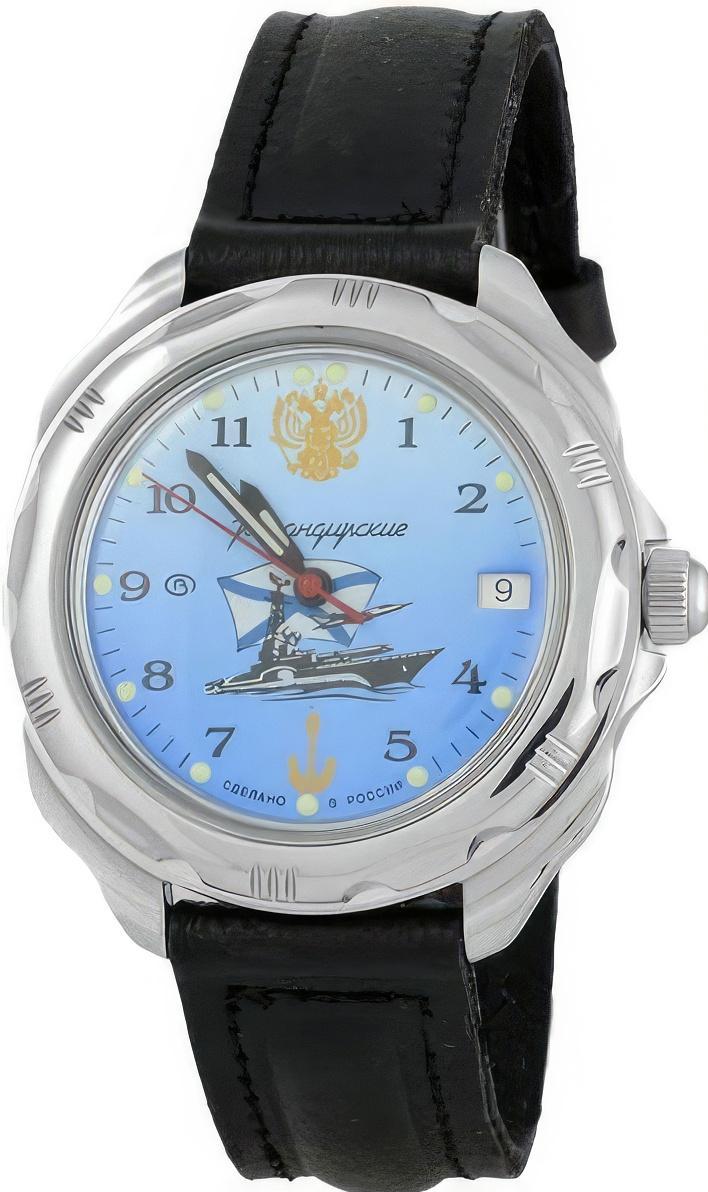Мужские наручные часы Восток Командирские 211139. Механические с ручным подзаводом. Корпус изготовлен из высококачественной часовой латуни с высокими антикоррозийными свойствами. На стрелки и отметки нанесен светонакопительный состав, благодаря этому считывать информацию с циферблата возможно и в темноте. На циферблате отображается текущее число месяца. Ремешок изготовлен из кожи. Прочное, устойчивое к царапинам минеральное стекло защищает часы от повреждений.Часы являются водонепроницаемыми до 3 Бар. Цвет корпуса: Серый. Цвет циферблата: Синий. Ширина (с заводной головкой): 40мм. Толщина: 10мм. Гарантия: 1 год.