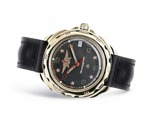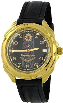 Мужские наручные часы Восток Командирские 219452. Механические с ручным подзаводом. Корпус изготовлен из высококачественной часовой латуни с высокими антикоррозийными свойствами. На стрелки и отметки нанесен светонакопительный состав, благодаря этому считывать информацию с циферблата возможно и в темноте. На циферблате отображается текущее число месяца. Ремешок изготовлен из кожи. Прочное, устойчивое к царапинам минеральное стекло защищает часы от повреждений.Часы являются водонепроницаемыми до 3 Бар. Цвет корпуса: Желтое золото. Цвет циферблата: Черный. Ширина (с заводной головкой): 40мм. Толщина: 10мм. Гарантия: 1 год.