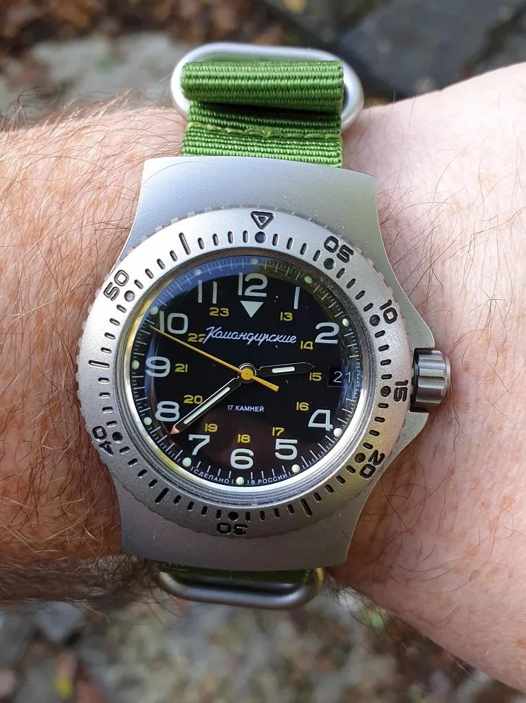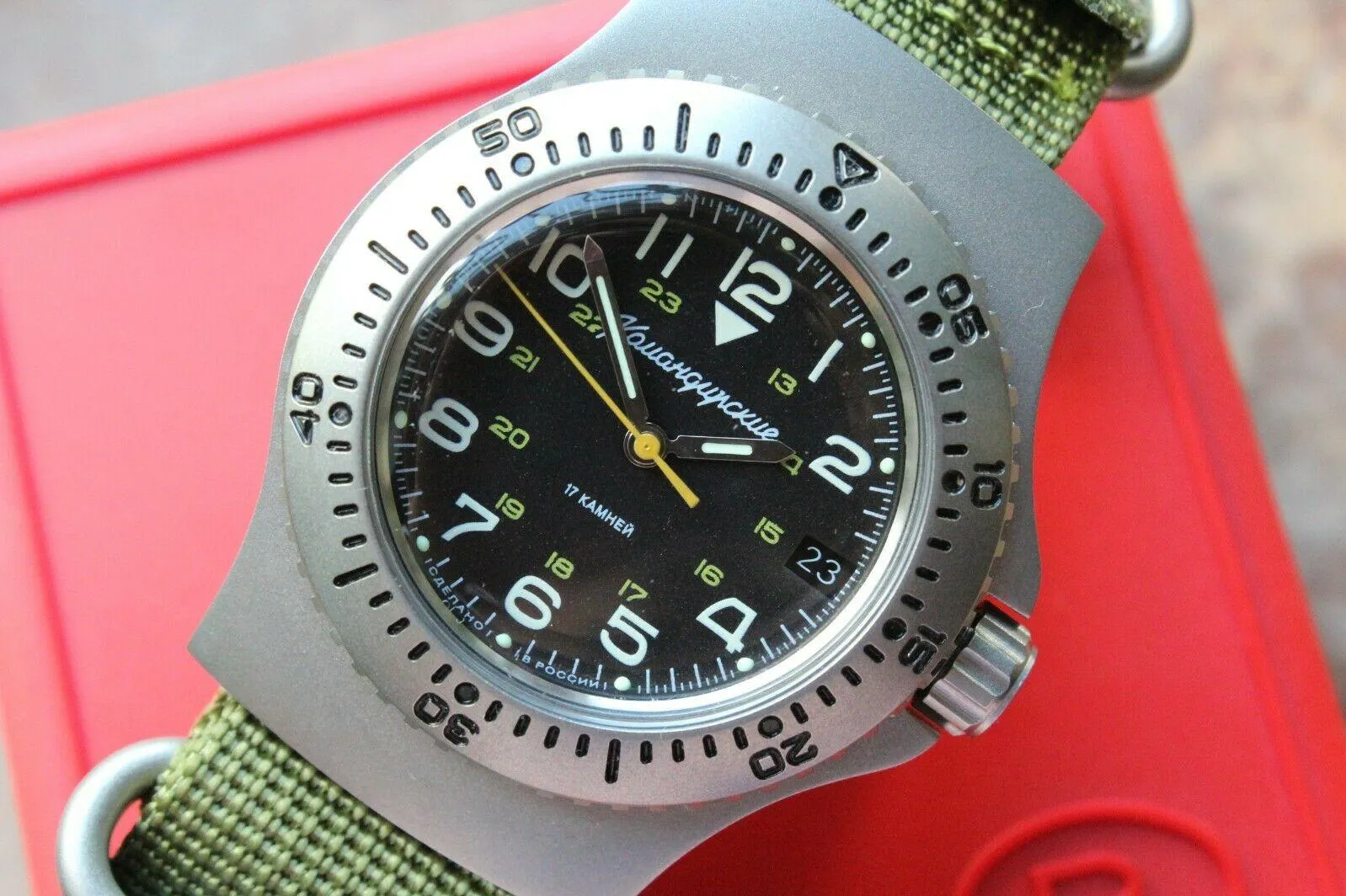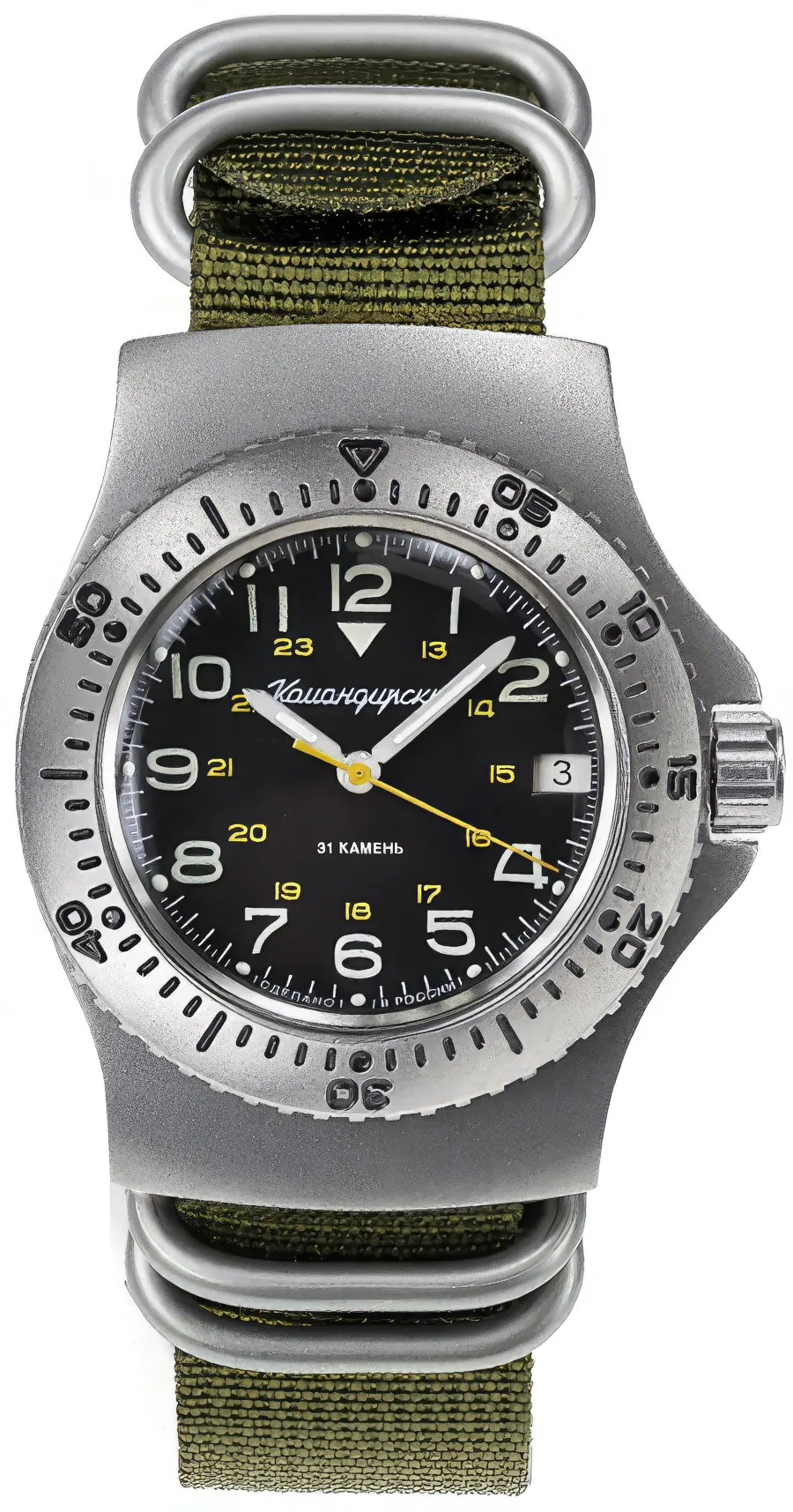 Мужские наручные часы Восток Командирские 280683. Механические с автоподзаводом. Пружина механизма заводится автоматически благодаря естественным движениям владельца в процессе ежедневной носки часов. Корпус изготовлен из высококачественной нержавеющей стали 316L с высокими антикоррозийными свойствами. На стрелки и отметки нанесен светонакопительный состав, благодаря этому считывать информацию с циферблата возможно и в темноте. На циферблате отображается текущее число месяца. Текстильный ремешок. Органическое стекло. Часы являются водонепроницаемыми до 10 Бар. Цвет корпуса: Двухцветный. Цвет циферблата: Черный. Ширина (с заводной головкой): 42мм. Толщина: 13мм. Гарантия: 1 год.