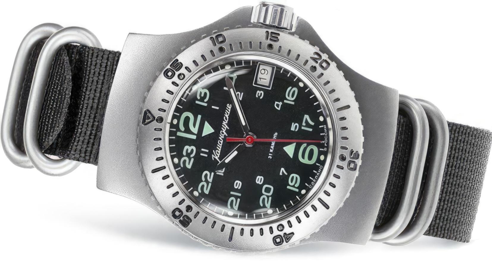 Мужские наручные часы Восток Командирские 280991. Механические с ручным подзаводом. Корпус изготовлен из высококачественной нержавеющей стали 316L с высокими антикоррозийными свойствами. На стрелки и отметки нанесен светонакопительный состав, благодаря этому считывать информацию с циферблата возможно и в темноте. На циферблате отображается текущее число месяца. Текстильный ремешок. Органическое стекло. Часы являются водонепроницаемыми до 20 Бар. Цвет корпуса: Серебристый. Цвет циферблата: Черный. Ширина (с заводной головкой): 40мм. Толщина: 15мм. Гарантия: 1 год.