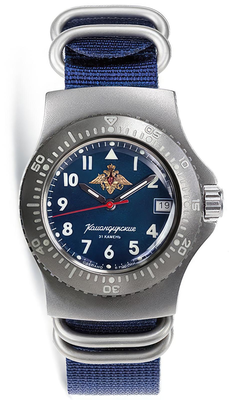 Мужские наручные часы Восток Командирские 280993. Автоматические с ручным подзаводом. Пружина механизма заводится автоматически благодаря естественным движениям владельца в процессе ежедневной носки часов. Также есть возможность ручного завода. Корпус изготовлен из высококачественной нержавеющей стали 316L с высокими антикоррозийными свойствами. На стрелки и отметки нанесен светонакопительный состав, благодаря этому считывать информацию с циферблата возможно и в темноте. На циферблате отображается текущее число месяца. Текстильный ремешок. Органическое стекло. Часы являются водонепроницаемыми до 20 Бар. Цвет корпуса: Серебристый. Цвет циферблата: Синий. Гарантия: 1 год.