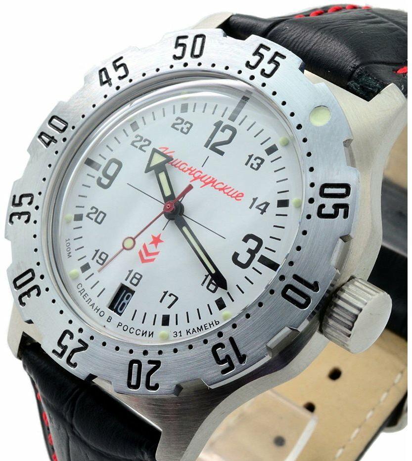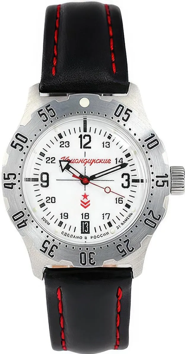 Мужские наручные часы Восток Командирские 350514. Автоматические с ручным подзаводом. Пружина механизма заводится автоматически благодаря естественным движениям владельца в процессе ежедневной носки часов. Также есть возможность ручного завода. Корпус изготовлен из высококачественной нержавеющей стали 316L с высокими антикоррозийными свойствами. На стрелки и отметки нанесен светонакопительный состав, благодаря этому считывать информацию с циферблата возможно и в темноте. На циферблате отображается текущее число месяца. Ремешок изготовлен из кожи. Органическое стекло. Часы являются водонепроницаемыми до 10 Бар. Цвет корпуса: Двухцветный. Цвет циферблата: Белый. Ширина (с заводной головкой): 42мм. Толщина: 15мм. Гарантия: 1 год.