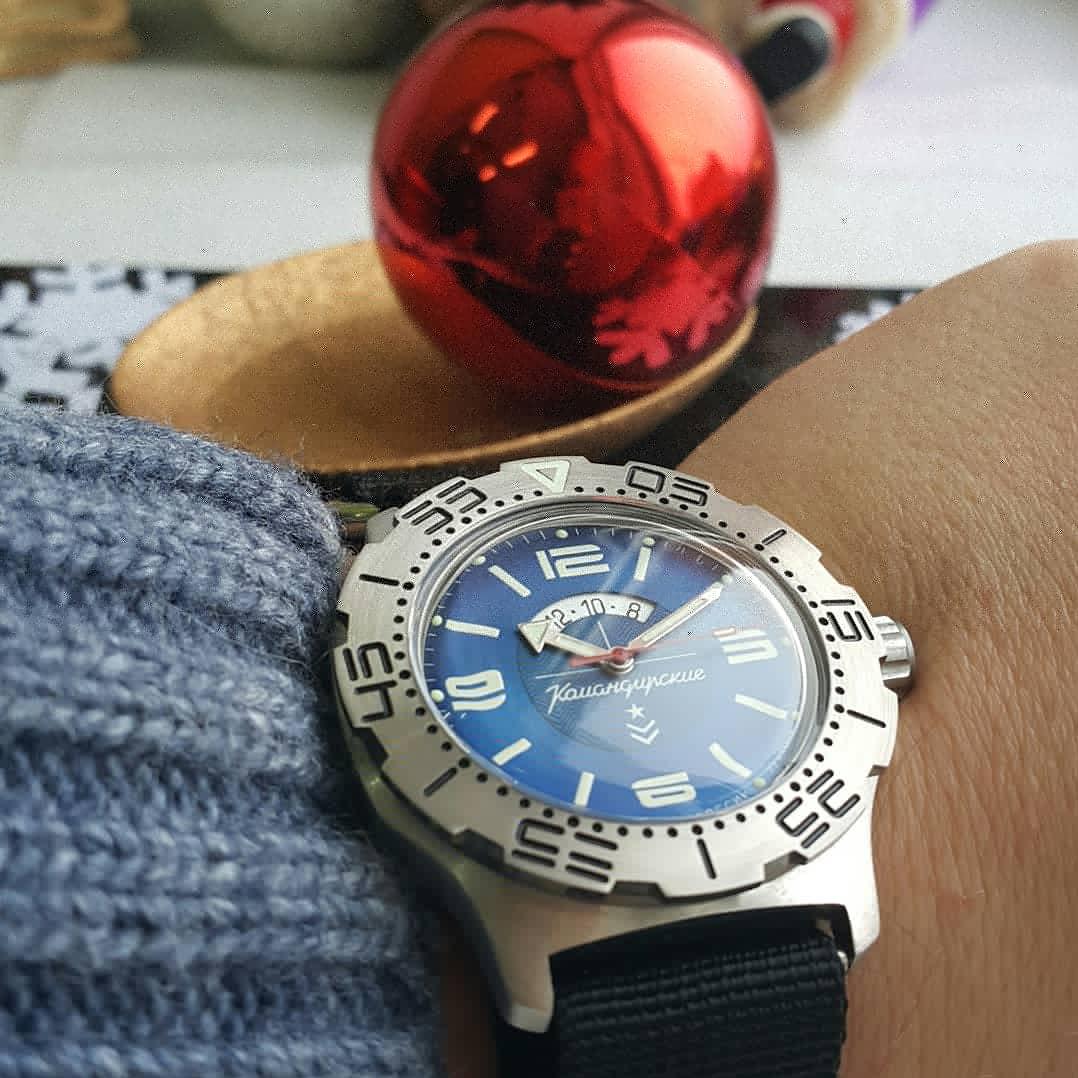 Мужские наручные часы Восток Командирские 350669. Автоматические с ручным подзаводом. Пружина механизма заводится автоматически благодаря естественным движениям владельца в процессе ежедневной носки часов. Также есть возможность ручного завода. Корпус изготовлен из высококачественной нержавеющей стали 316L с высокими антикоррозийными свойствами. На стрелки и отметки нанесен светонакопительный состав, благодаря этому считывать информацию с циферблата возможно и в темноте. На циферблате отображается текущее число месяца. Текстильный ремешок. Органическое стекло. Часы являются водонепроницаемыми до 10 Бар. Цвет корпуса: Двухцветный. Цвет циферблата: Синий. Ширина (с заводной головкой): 42мм. Толщина: 15мм. Гарантия: 1 год.