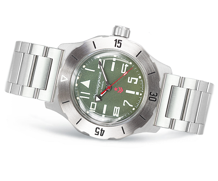 Мужские наручные часы Восток Командирские 350746. Автоматические с ручным подзаводом. Пружина механизма заводится автоматически благодаря естественным движениям владельца в процессе ежедневной носки часов. Также есть возможность ручного завода. Корпус изготовлен из высококачественной нержавеющей стали 316L с высокими антикоррозийными свойствами. На стрелки и отметки нанесен светонакопительный состав, благодаря этому считывать информацию с циферблата возможно и в темноте. Текстильный ремешок. Органическое стекло. Часы являются водонепроницаемыми до 10 Бар. Цвет корпуса: Двухцветный. Цвет циферблата: Зеленый. Ширина (с заводной головкой): 42мм. Толщина: 15мм. Гарантия: 1 год.