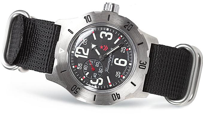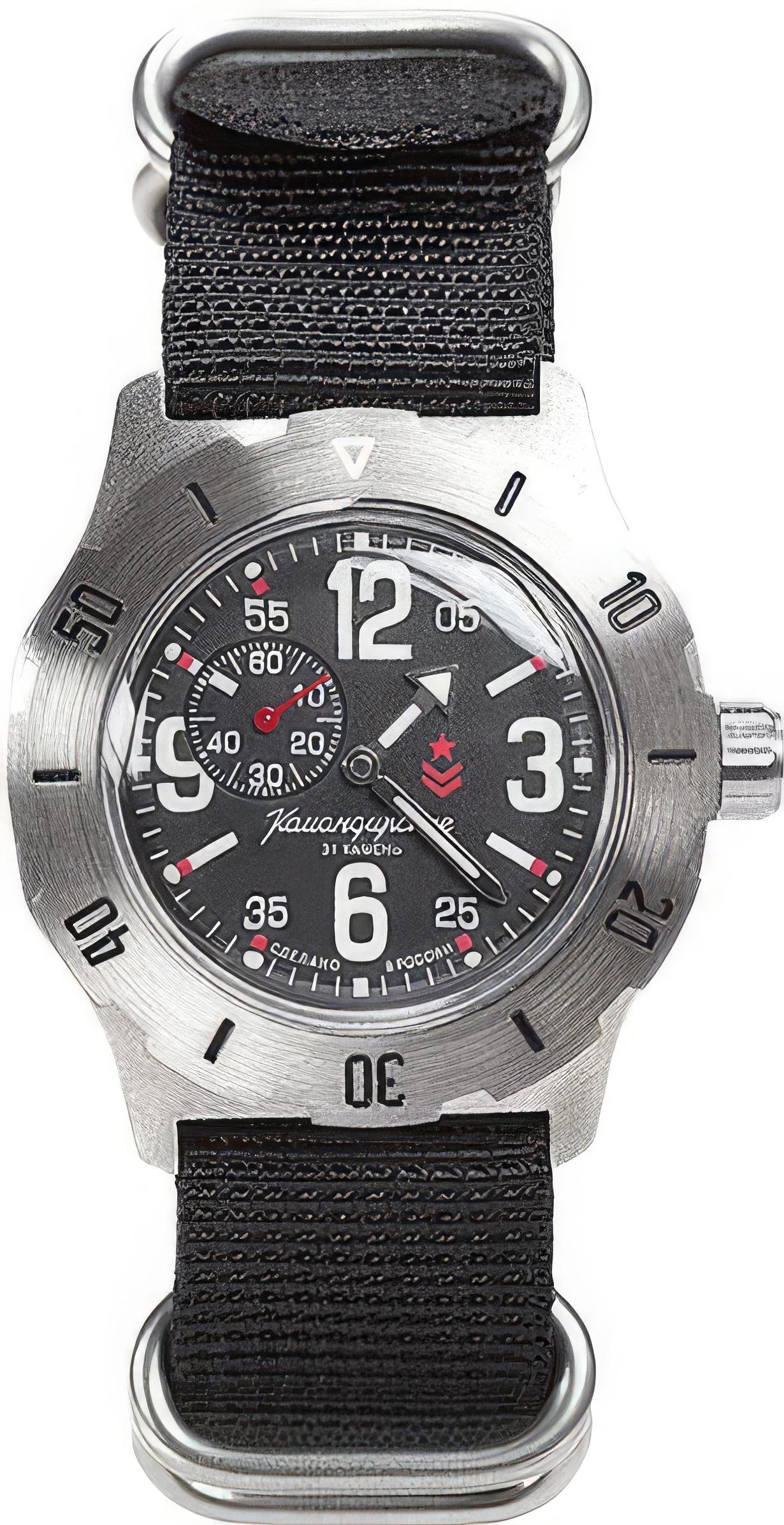 Мужские наручные часы Восток Командирские 350748. Механические с автоподзаводом. Пружина механизма заводится автоматически благодаря естественным движениям владельца в процессе ежедневной носки часов. Корпус изготовлен из высококачественной нержавеющей стали 316L с высокими антикоррозийными свойствами. На стрелки и отметки нанесен светонакопительный состав, благодаря этому считывать информацию с циферблата возможно и в темноте. Текстильный ремешок. Органическое стекло. Часы являются водонепроницаемыми до 10 Бар. Цвет корпуса: Двухцветный. Цвет циферблата: Черный. Ширина (с заводной головкой): 42мм. Толщина: 15мм. Гарантия: 1 год.