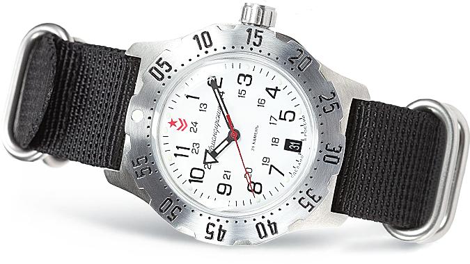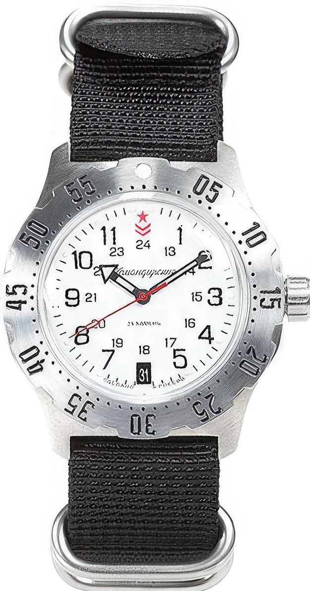 Мужские наручные часы Восток Командирские 350752. Автоматические с ручным подзаводом. Пружина механизма заводится автоматически благодаря естественным движениям владельца в процессе ежедневной носки часов. Также есть возможность ручного завода. Корпус изготовлен из высококачественной нержавеющей стали 316L с высокими антикоррозийными свойствами. На стрелки и отметки нанесен светонакопительный состав, благодаря этому считывать информацию с циферблата возможно и в темноте. На циферблате отображается текущее число месяца. Текстильный ремешок. Органическое стекло. Часы являются водонепроницаемыми до 10 Бар. Цвет корпуса: Двухцветный. Цвет циферблата: Белый. Ширина (с заводной головкой): 42мм. Толщина: 15мм. Гарантия: 1 год.