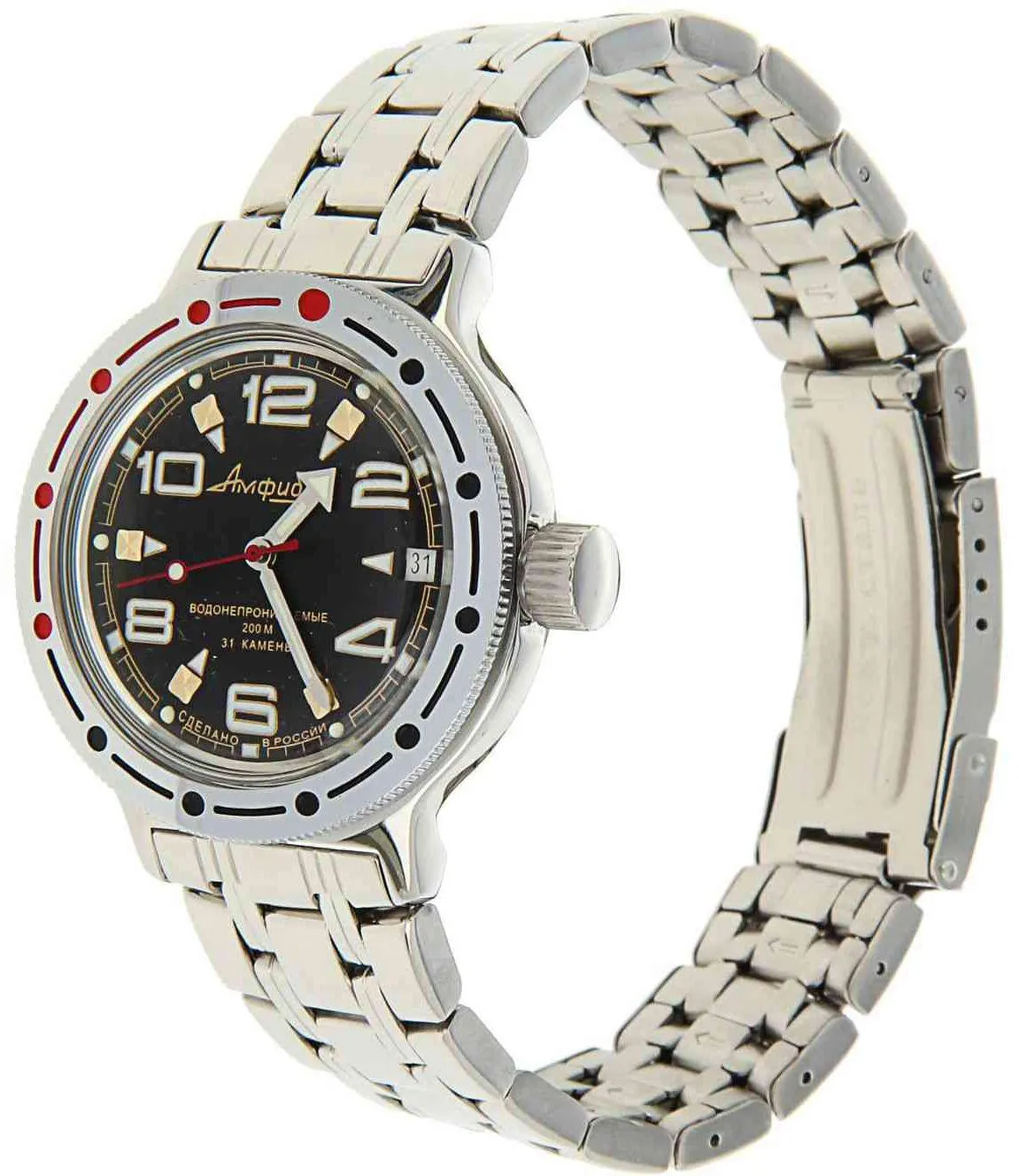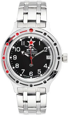 Мужские наручные часы Восток Командирские 420335. Автоматические с ручным подзаводом. Пружина механизма заводится автоматически благодаря естественным движениям владельца в процессе ежедневной носки часов. Также есть возможность ручного завода. Корпус изготовлен из высококачественной нержавеющей стали 316L с высокими антикоррозийными свойствами. На стрелки и отметки нанесен светонакопительный состав, благодаря этому считывать информацию с циферблата возможно и в темноте. На циферблате отображается текущее число месяца. Браслет из нержавеющей стали. Органическое стекло. Часы являются водонепроницаемыми до 20 Бар. Цвет корпуса: Серебристый. Цвет циферблата: Черный. Ширина (с заводной головкой): 40мм. Толщина: 13мм. Гарантия: 1 год.