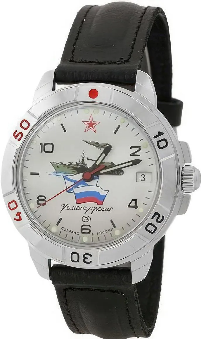 Мужские наручные часы Восток Командирские 431535. Механические с ручным подзаводом. Корпус изготовлен из высококачественной часовой латуни с высокими антикоррозийными свойствами. На стрелки и отметки нанесен светонакопительный состав, благодаря этому считывать информацию с циферблата возможно и в темноте. На циферблате отображается текущее число месяца. Ремешок изготовлен из кожи. Прочное, устойчивое к царапинам минеральное стекло защищает часы от повреждений.Часы являются водонепроницаемыми до 3 Бар. Цвет корпуса: Серебристый. Ширина (с заводной головкой): 40мм. Толщина: 10мм. Гарантия: 1 год.
