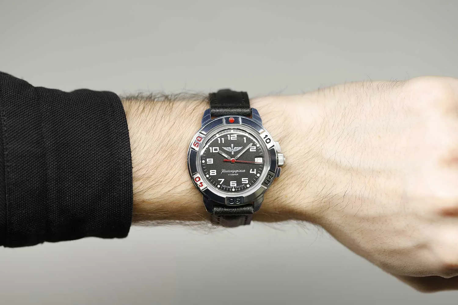 Мужские наручные часы Восток Командирские 431941. Механические с ручным подзаводом. Корпус изготовлен из высококачественной часовой латуни с высокими антикоррозийными свойствами. На стрелки и отметки нанесен светонакопительный состав, благодаря этому считывать информацию с циферблата возможно и в темноте. На циферблате отображается текущее число месяца. Ремешок изготовлен из кожи. Органическое стекло. Часы являются водонепроницаемыми до 3 Бар. Цвет циферблата: Черный. Ширина (с заводной головкой): 42мм. Толщина: 15мм. Гарантия: 1 год.