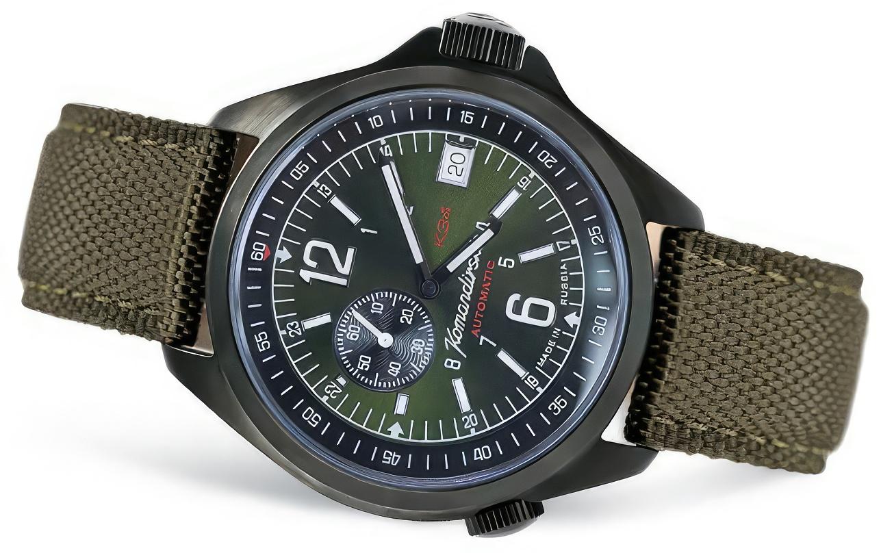 Мужские наручные часы Восток Командирские 476966. Механические с ручным подзаводом. Корпус изготовлен из высококачественной нержавеющей стали 316L с высокими антикоррозийными свойствами. На стрелки и отметки нанесен светонакопительный состав, благодаря этому считывать информацию с циферблата возможно и в темноте. На циферблате отображается текущее число месяца. Текстильный ремешок. Прочное, устойчивое к царапинам минеральное стекло защищает часы от повреждений. Часы являются водонепроницаемыми до 10 Бар. Цвет корпуса: Черный. Цвет циферблата: Зеленый. Ширина (с заводной головкой): 40мм. Толщина: 13мм. Гарантия: 1 год.