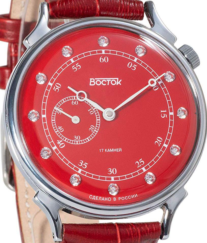 Женские наручные часы Восток Командирские 581590. Механические с автоподзаводом. Пружина механизма заводится автоматически благодаря естественным движениям владельца в процессе ежедневной носки часов. Корпус изготовлен из высококачественной нержавеющей стали 316L с высокими антикоррозийными свойствами. Ремешок изготовлен из кожи. Органическое стекло. Часы являются водонепроницаемыми до 3 Бар. Цвет корпуса: Красный. Цвет циферблата: Красный. Ширина (с заводной головкой): 38мм. Толщина: 11мм. Гарантия: 1 год.