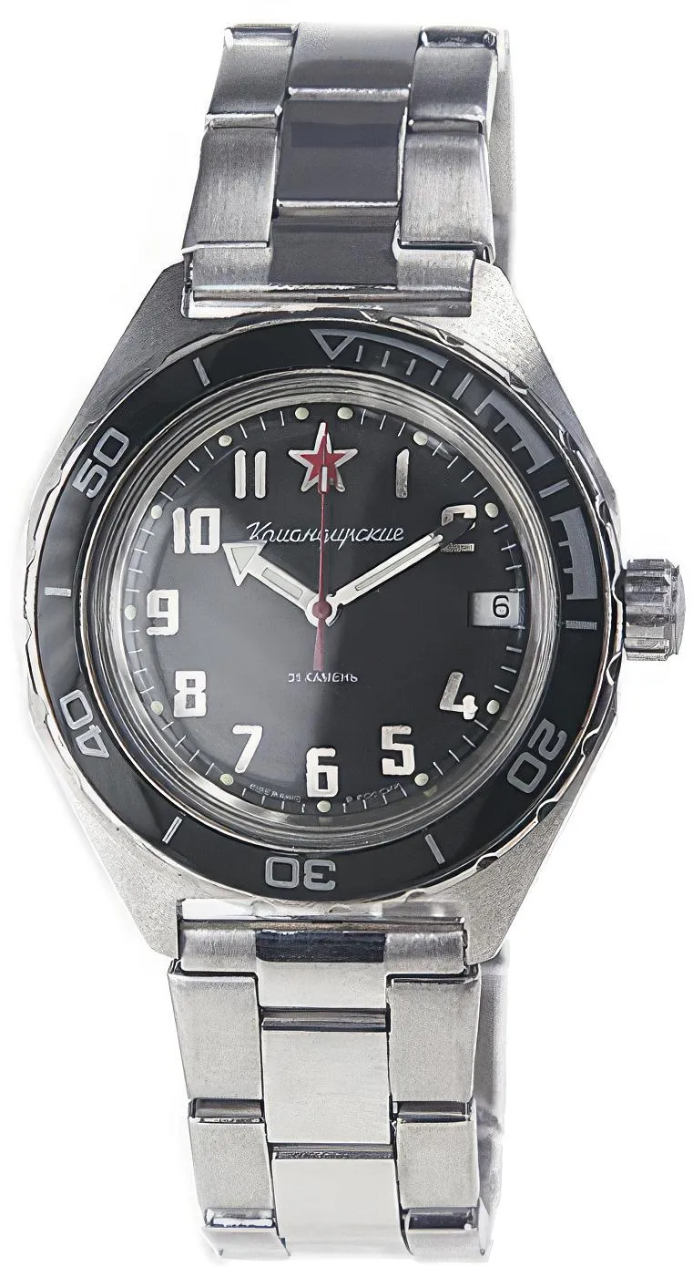 Мужские наручные часы Восток Командирские 650537. Автоматические с ручным подзаводом. Пружина механизма заводится автоматически благодаря естественным движениям владельца в процессе ежедневной носки часов. Также есть возможность ручного завода. Корпус изготовлен из высококачественной нержавеющей стали 316L с высокими антикоррозийными свойствами. На стрелки и отметки нанесен светонакопительный состав, благодаря этому считывать информацию с циферблата возможно и в темноте. На циферблате отображается текущее число месяца. Браслет из нержавеющей стали. Органическое стекло. Часы являются водонепроницаемыми до 20 Бар. Цвет корпуса: Серебристый. Цвет циферблата: Черный. Ширина (с заводной головкой): 41мм. Толщина: 15мм. Гарантия: 1 год.