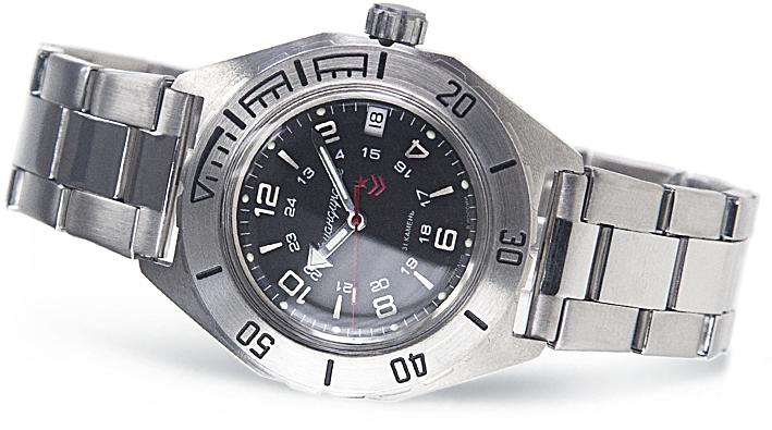 Мужские наручные часы Восток Командирские 650538. Механические с автоподзаводом. Пружина механизма заводится автоматически благодаря естественным движениям владельца в процессе ежедневной носки часов. Корпус изготовлен из высококачественной нержавеющей стали 316L с высокими антикоррозийными свойствами. На стрелки и отметки нанесен светонакопительный состав, благодаря этому считывать информацию с циферблата возможно и в темноте. На циферблате отображается текущее число месяца. Браслет из нержавеющей стали. Органическое стекло. Часы являются водонепроницаемыми до 20 Бар. Цвет корпуса: Серый. Цвет циферблата: Черный. Ширина (с заводной головкой): 41мм. Толщина: 15мм. Гарантия: 1 год.